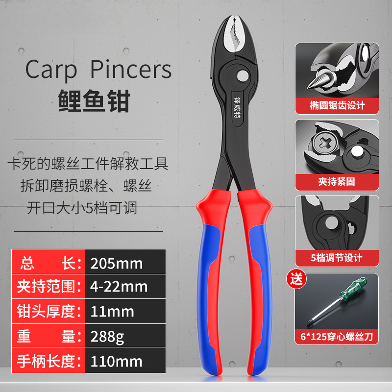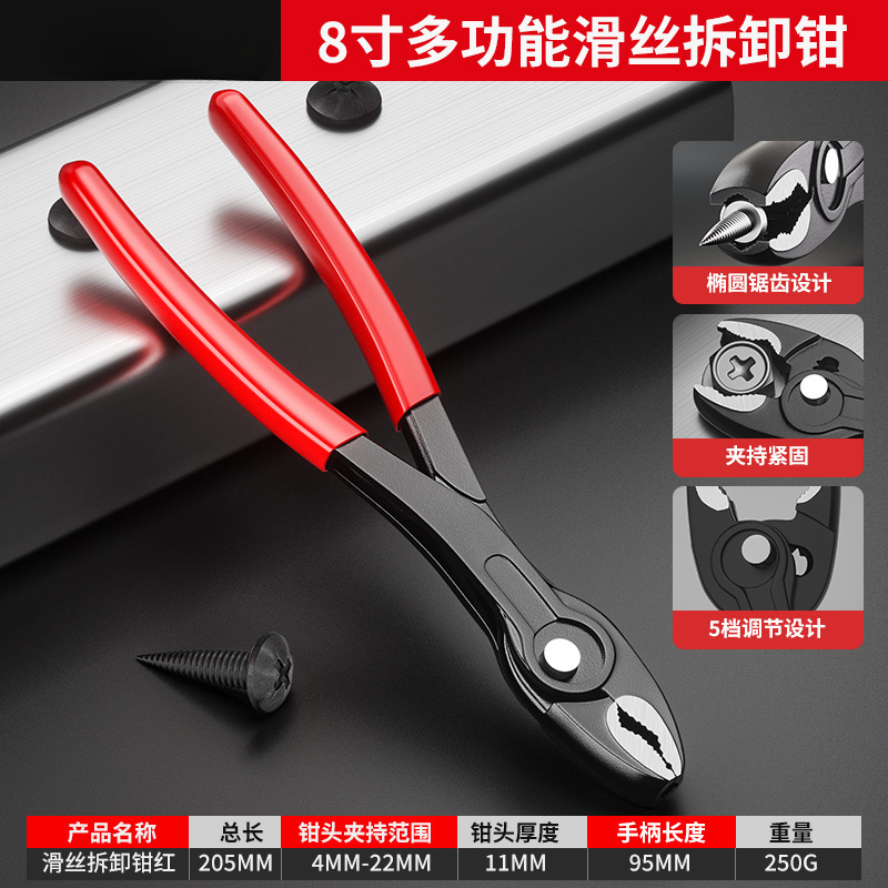 【旗舰椭圆防滑款】8寸滑牙螺丝取出钳-五档调节