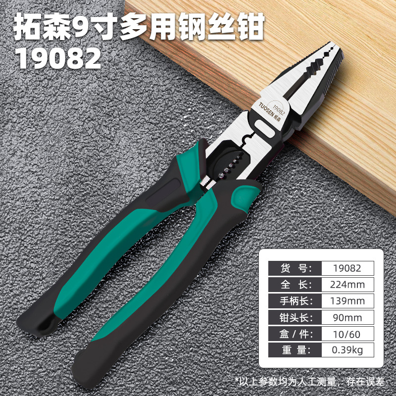 19082,拓森9寸多用钢丝钳,10/盒60/件,0.39kg