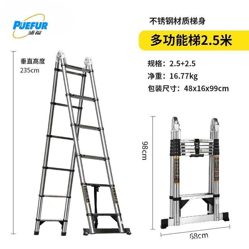 加厚防晃多功能2.5米可变直梯5米