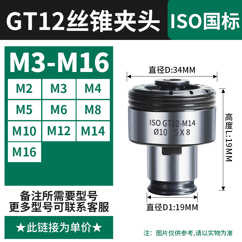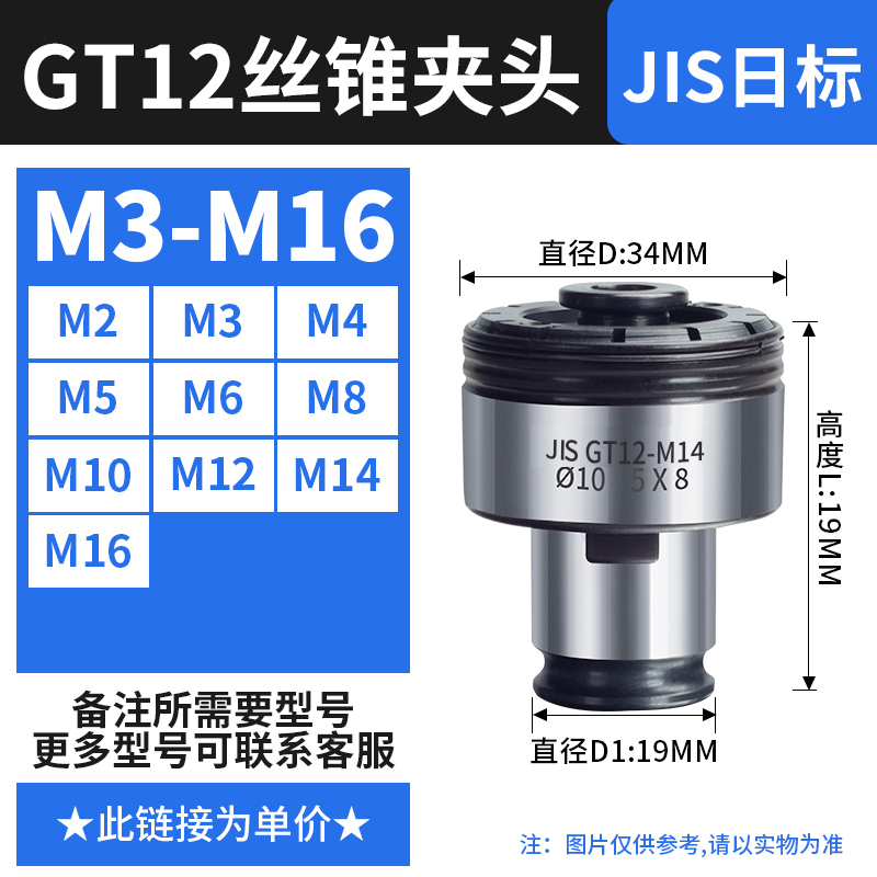 【丝攻夹头GT12】国标(M2-M16)备注孔径