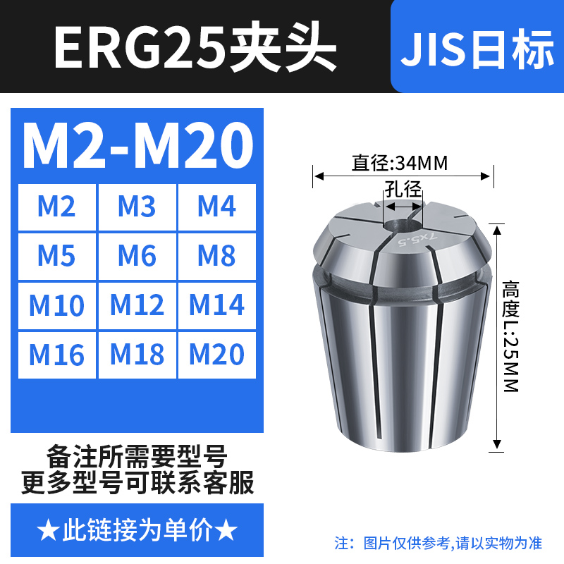 【丝攻夹头ERG25】日标(M2-M20)备注孔径