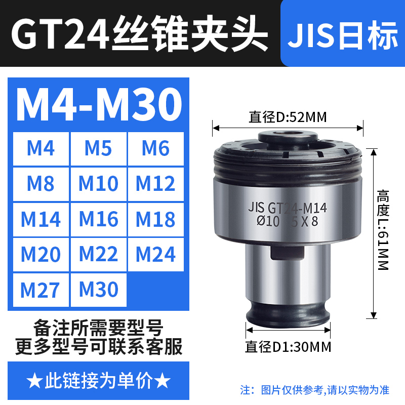 【丝攻夹头GT24】日标(M4-M30)备注孔径