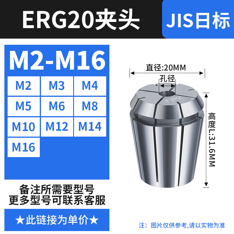 【丝攻夹头ERG20】日标(M2-M16)备注孔径