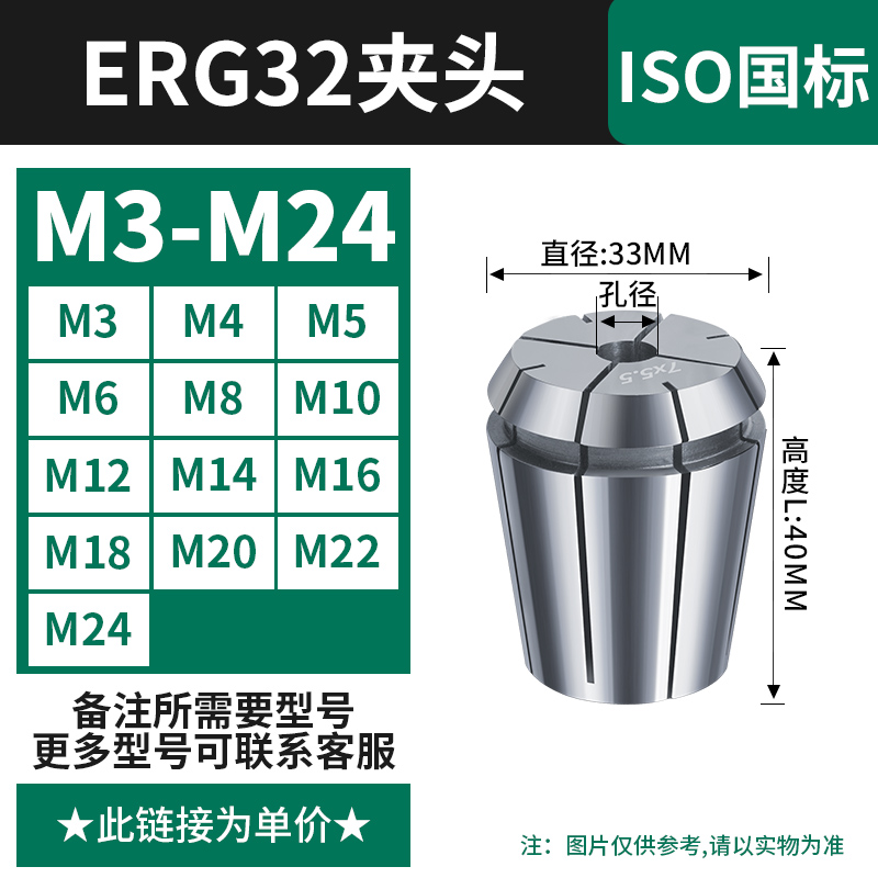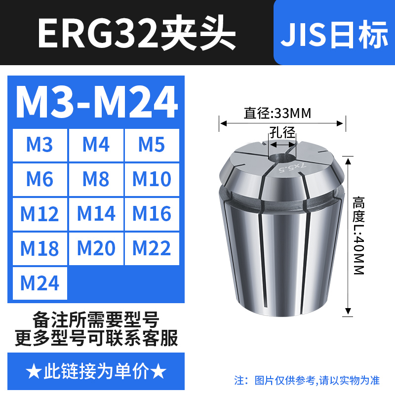 【丝攻夹头ERG32】国标(M3-M24)备注孔径