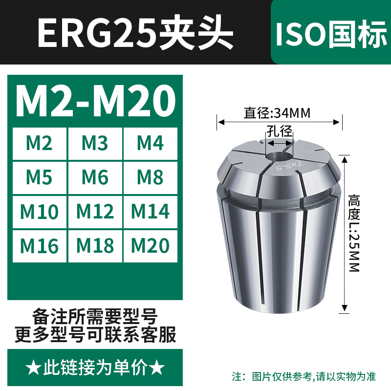 【丝攻夹头ERG25】国标(M2-M20)备注孔径