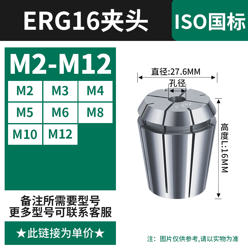 【丝攻夹头ERG16】国标(M2-M12)备注孔径