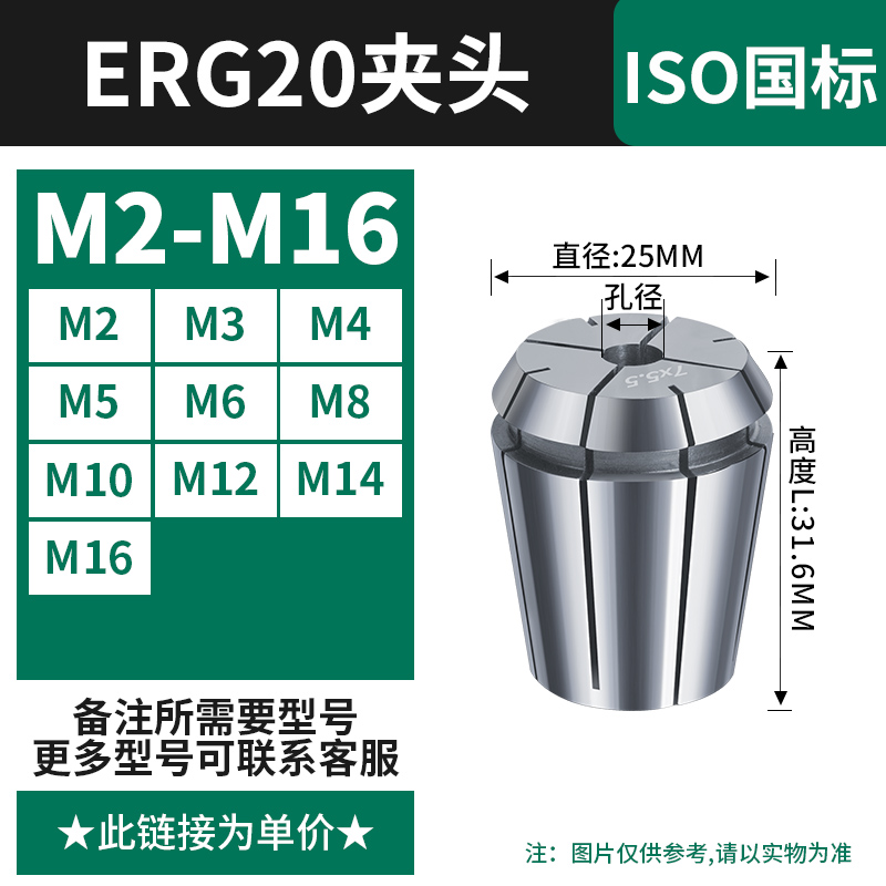 【丝攻夹头ERG20】国标(M2-M16)备注孔径