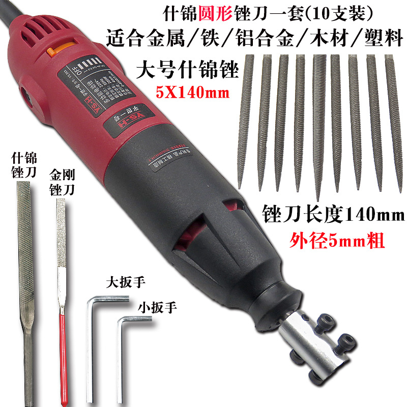 电动锉刀机+大号粗齿圆形什锦锉(10支)