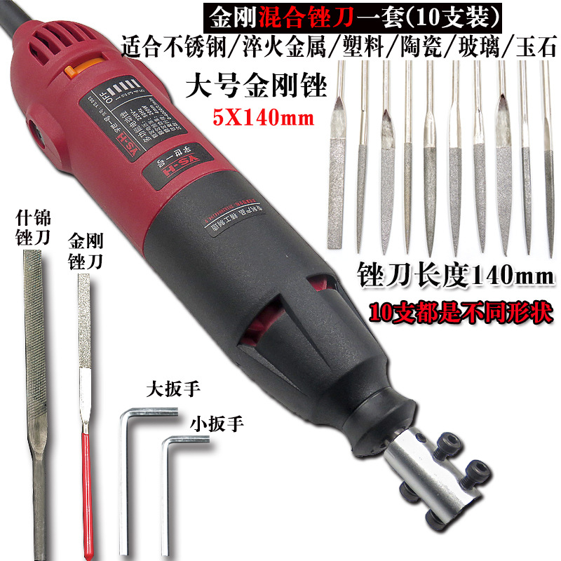 电动锉刀机+大号混合金刚锉(10支)