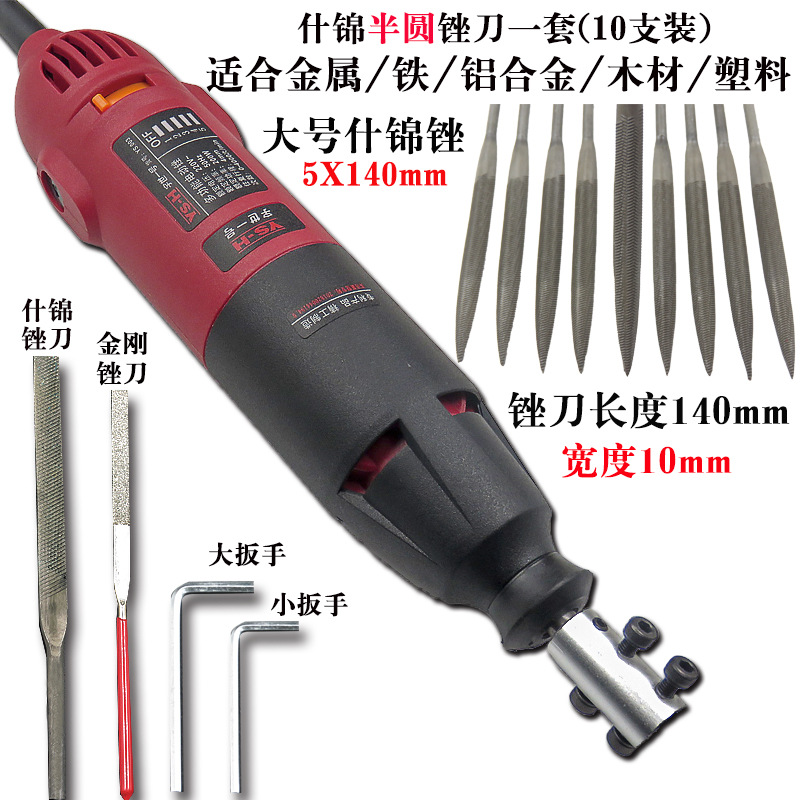 电动锉刀机+大号粗齿半圆什锦锉(10支)