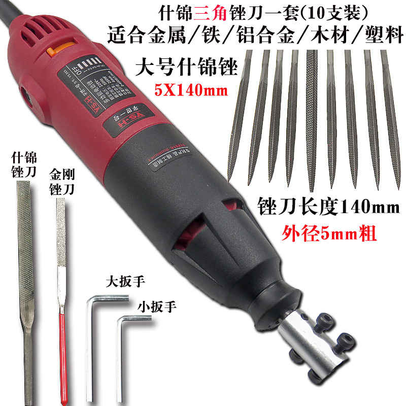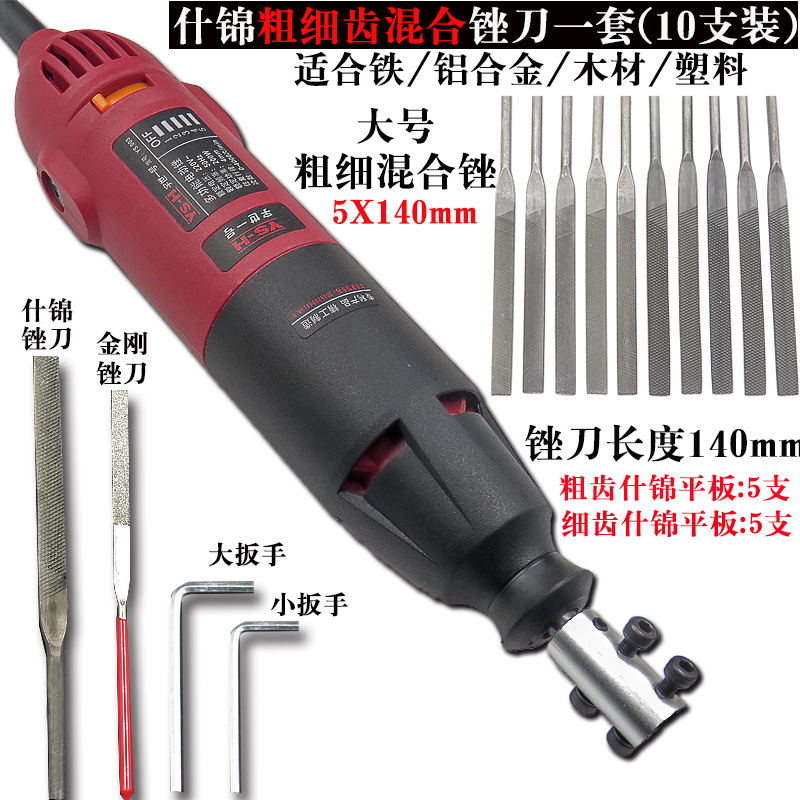 电动锉刀机+大号细齿混合什锦锉(10支)