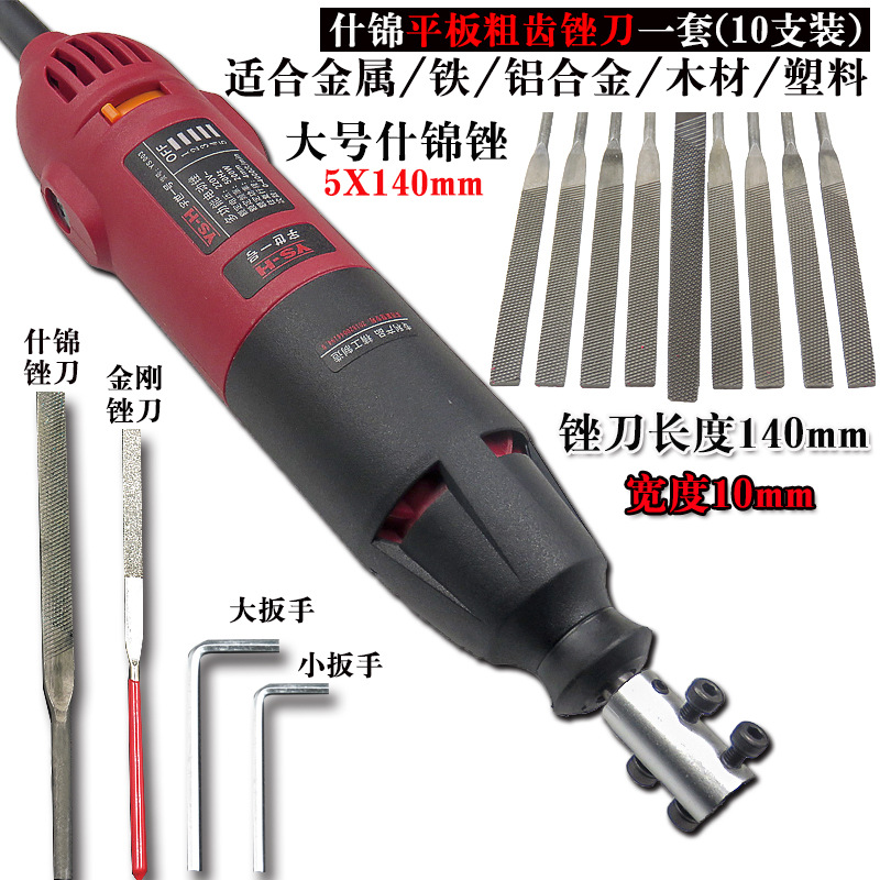 电动锉刀+什锦粗细混合平板锉(10支)