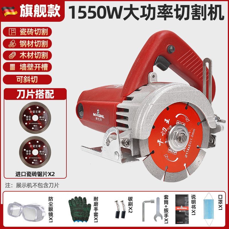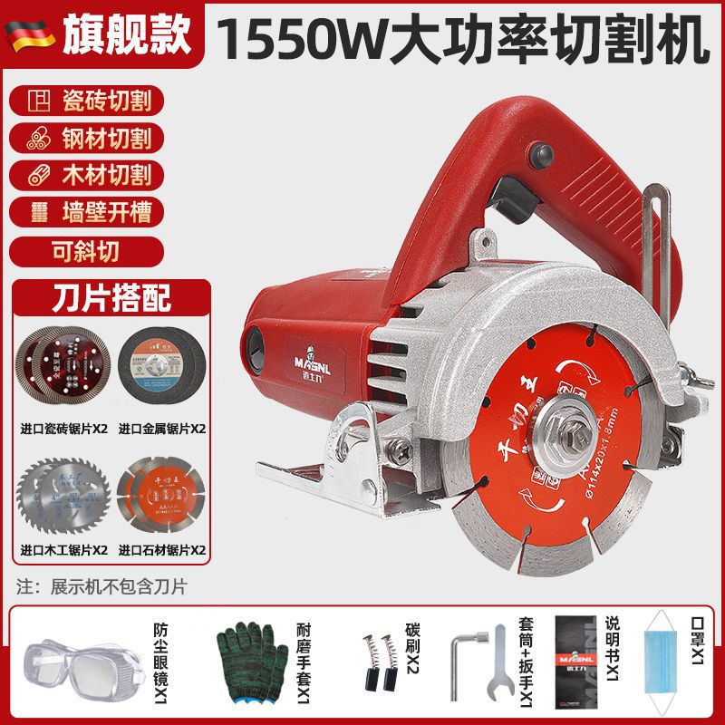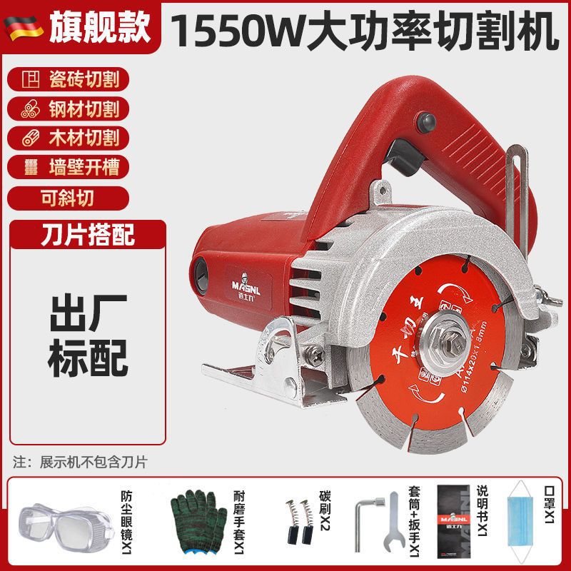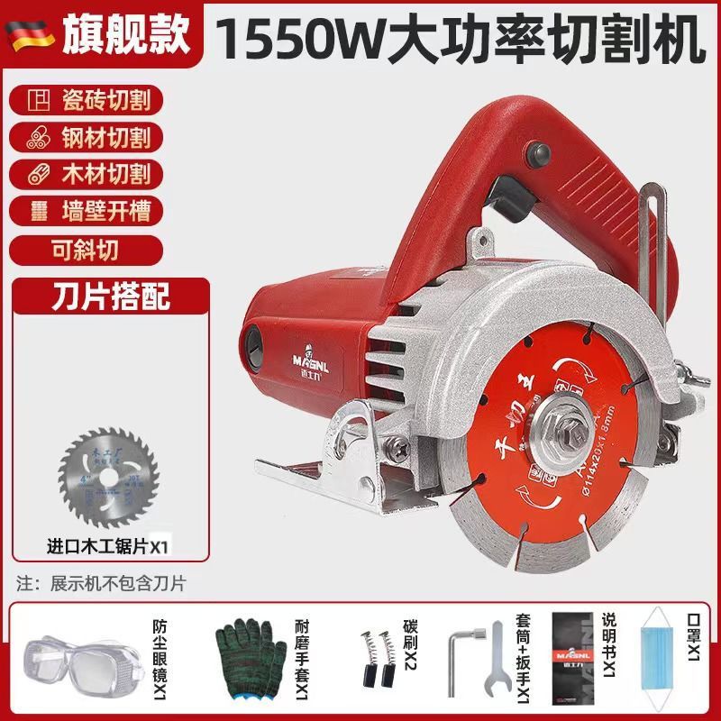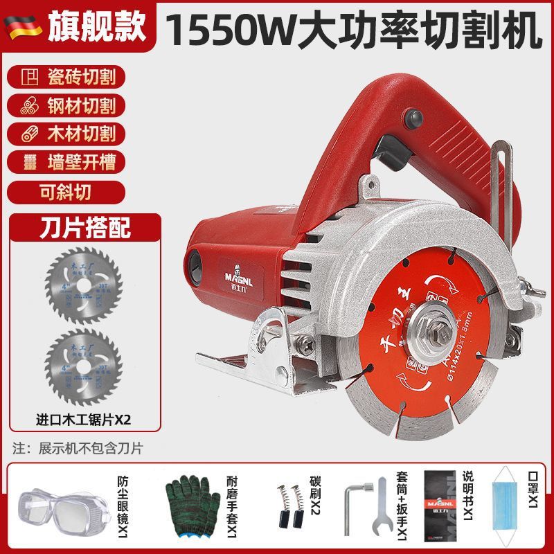 固德出品【旗舰款1550瓦】-进口木工锯片2张+石材锯片2张