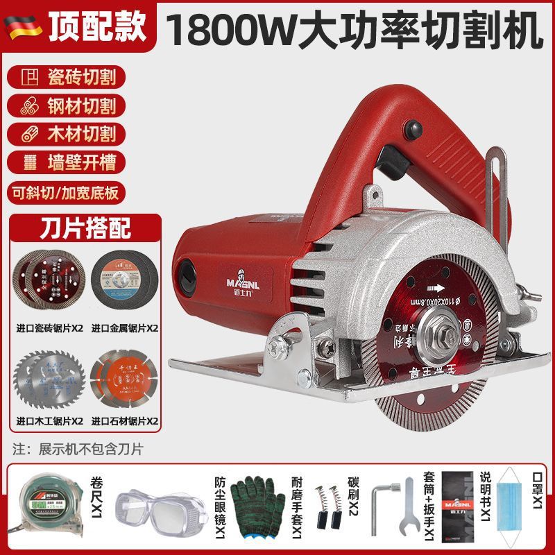 固德出品【旗舰款1800瓦】-进口木工锯片2张+石材锯片2张
