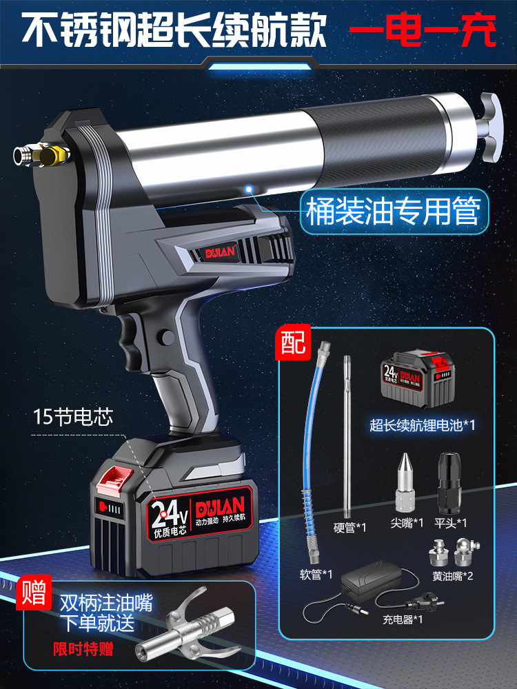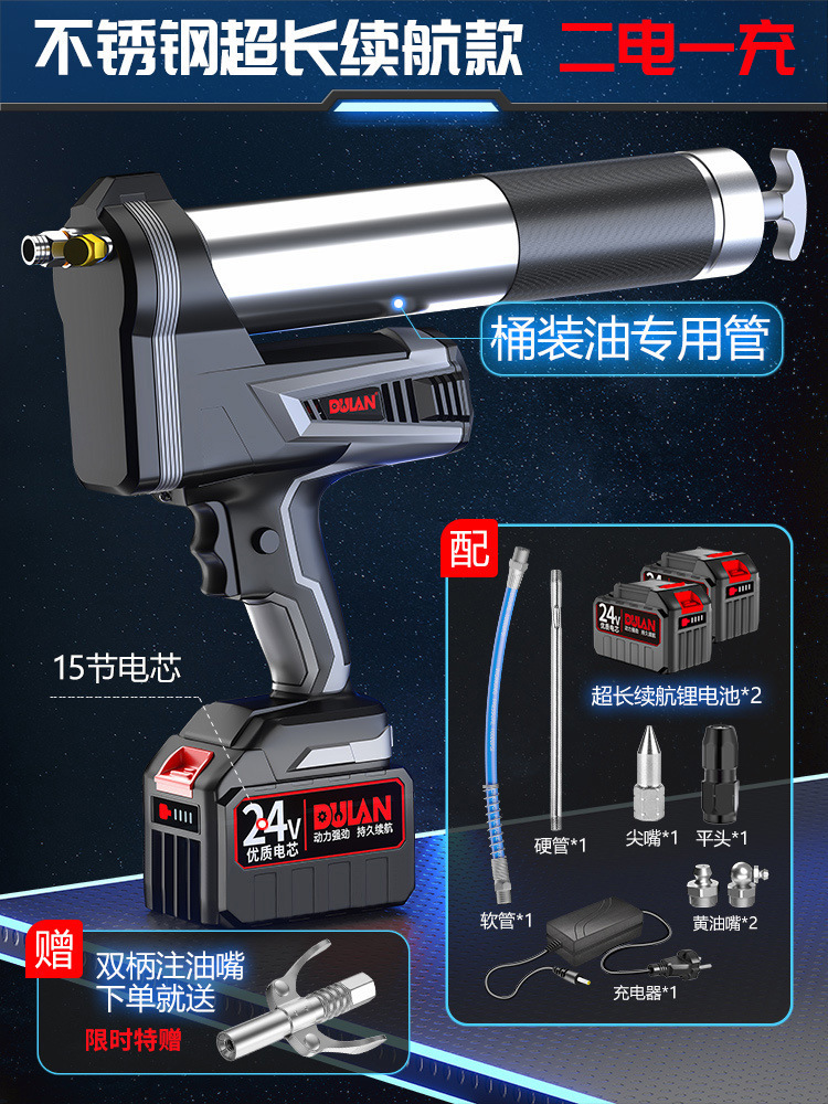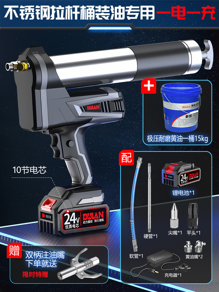 【不锈钢拉杆桶装油】一电一充+极压耐磨黄油一桶15kg