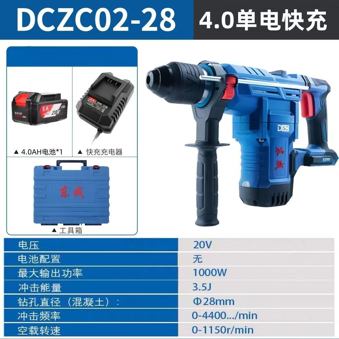 方柄02-28锤镐双用【4.0一电一充+箱】
