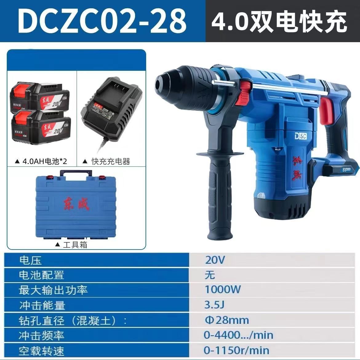 方柄02-28锤镐双用【4.0二电一充+箱】