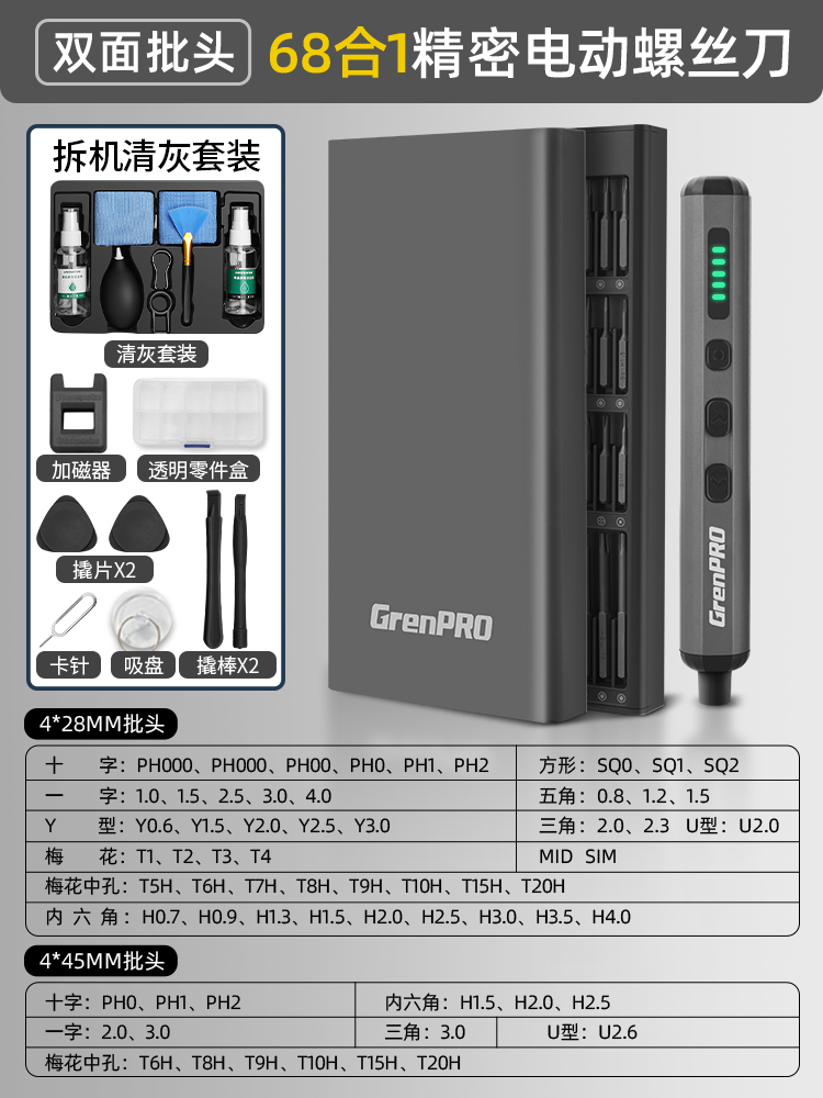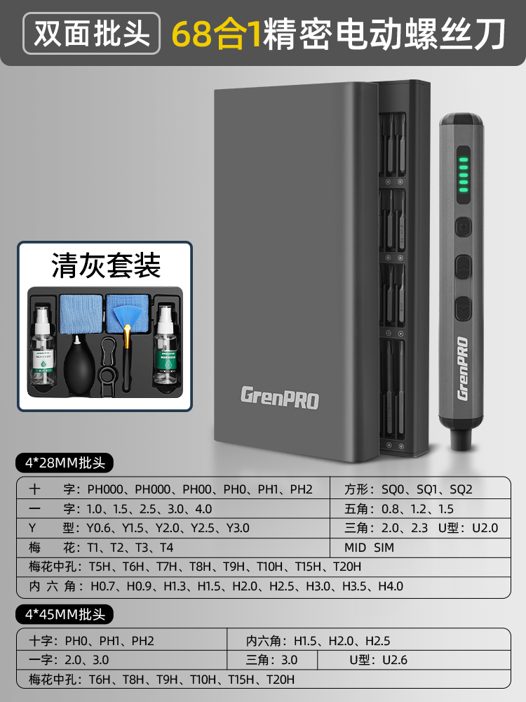 【四挡可调】68合1电动螺丝批-S2钢批头(送礼盒版清灰套装)
