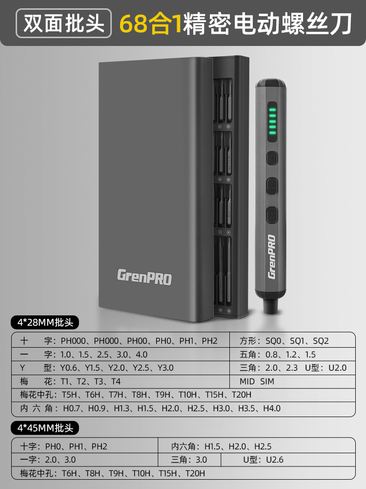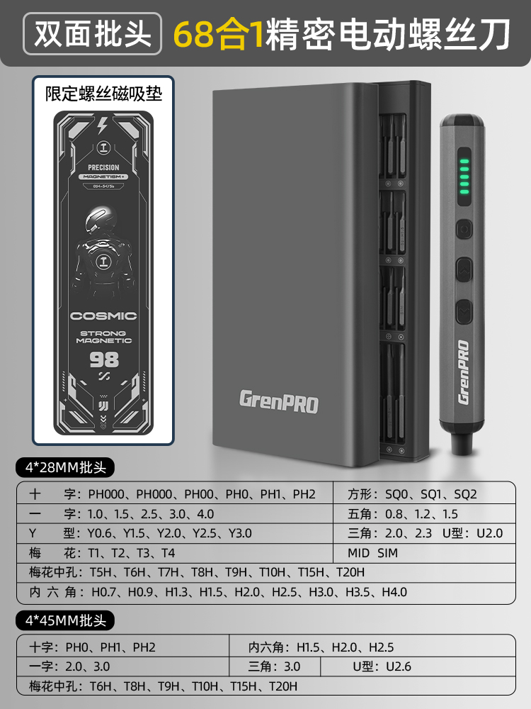 【四挡可调】68合1电动螺丝批-S2钢批头(送限定螺丝磁吸垫)