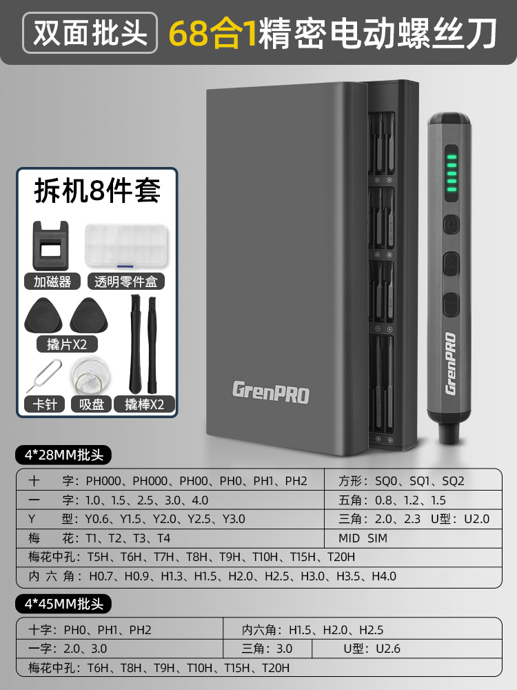 【四挡可调】68合1电动螺丝批-S2钢批头(送拆机8件大礼包)