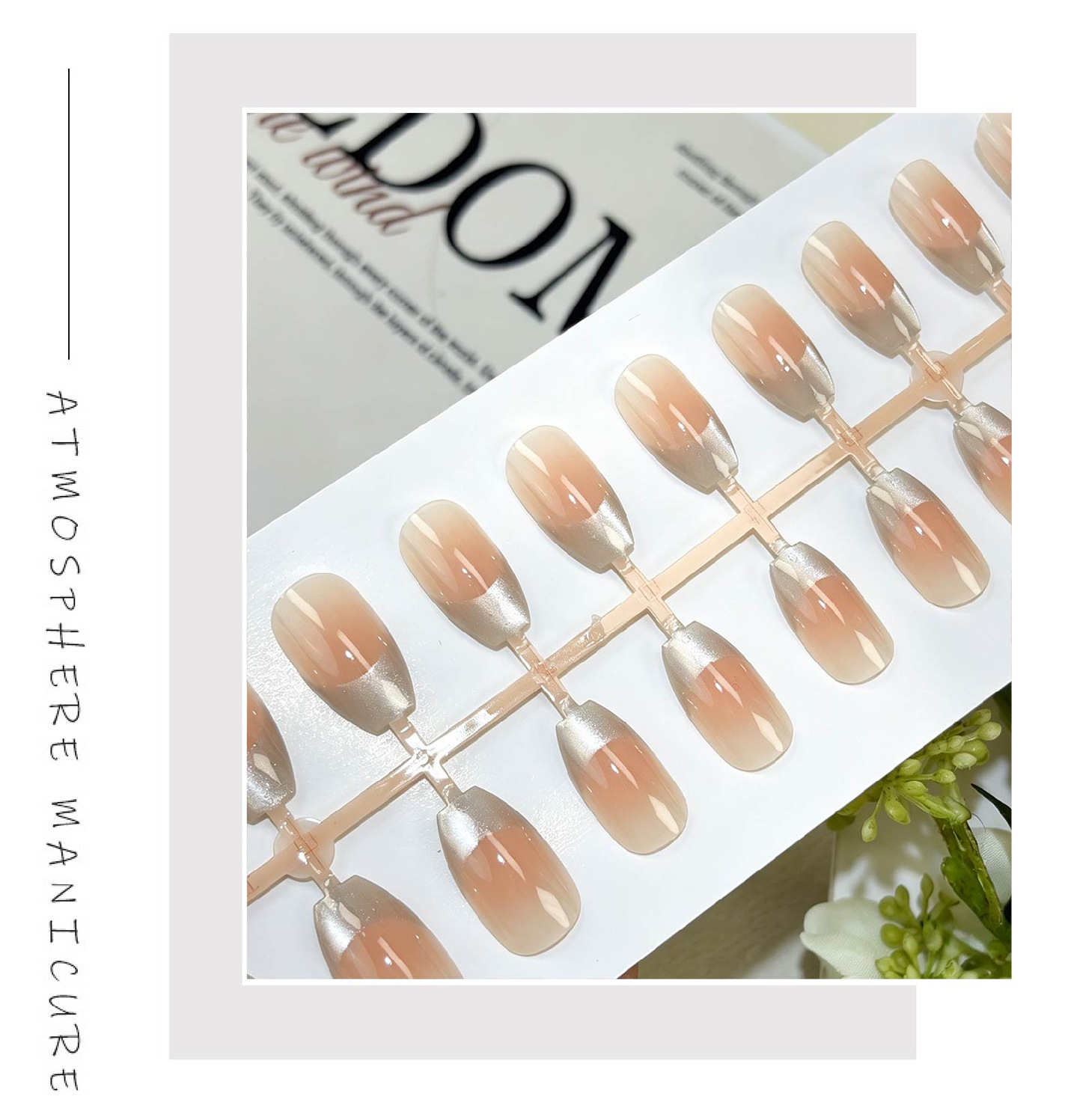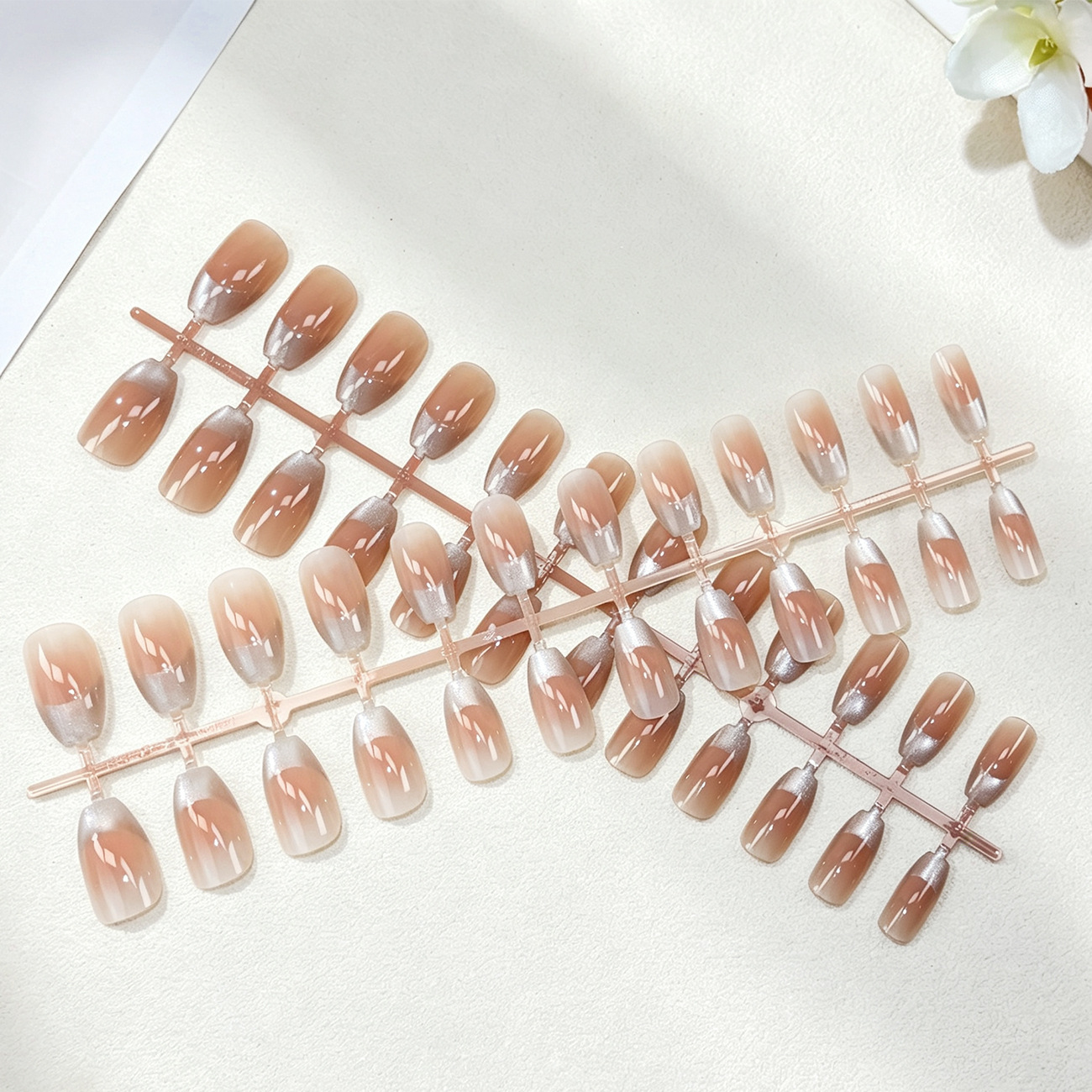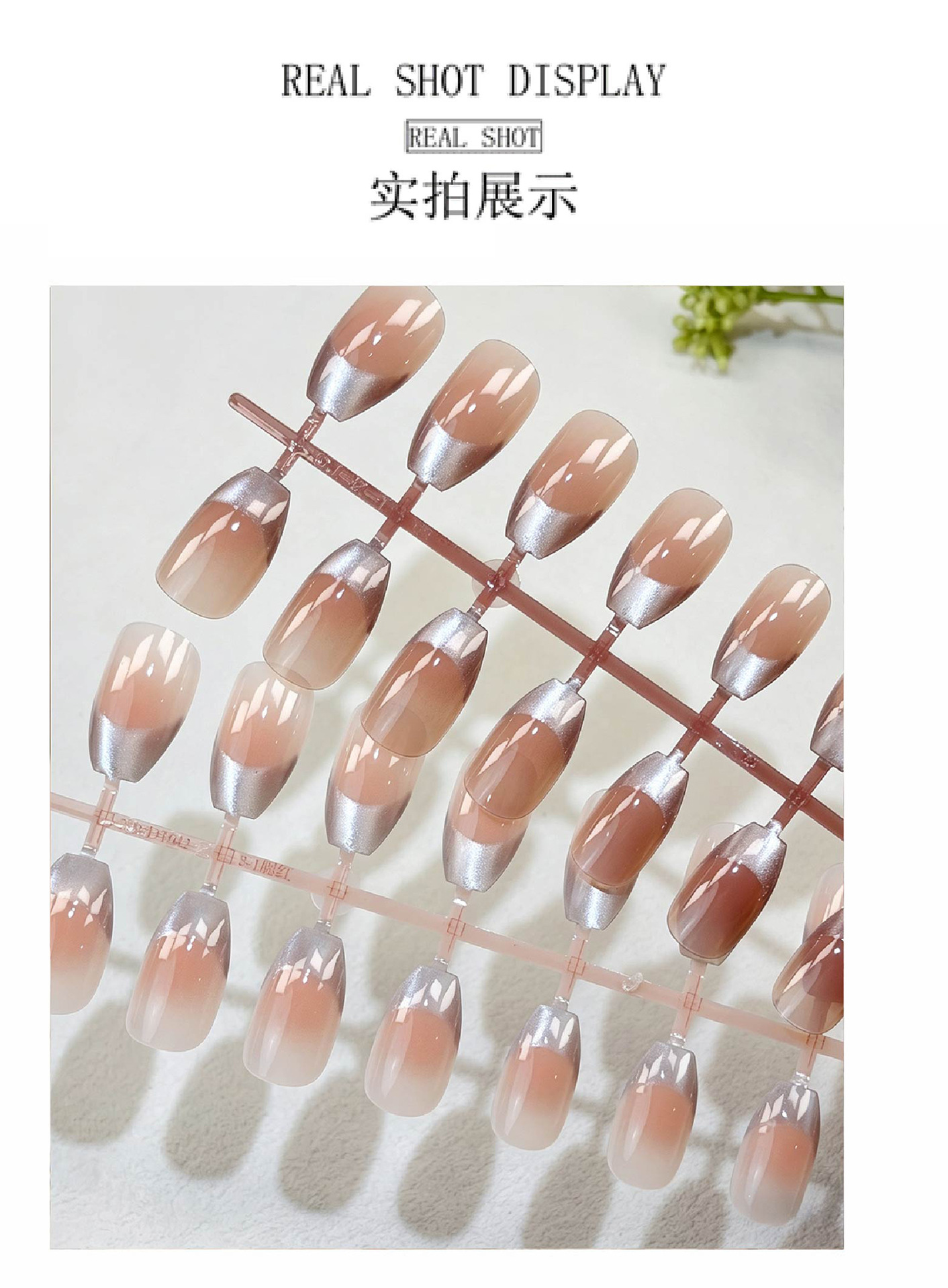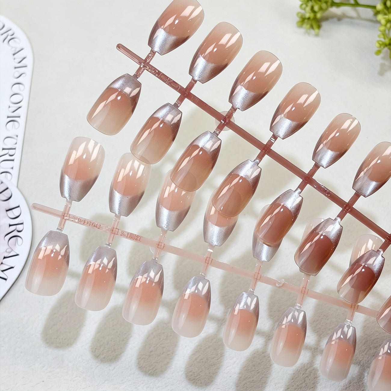 milk tea silver flash nail