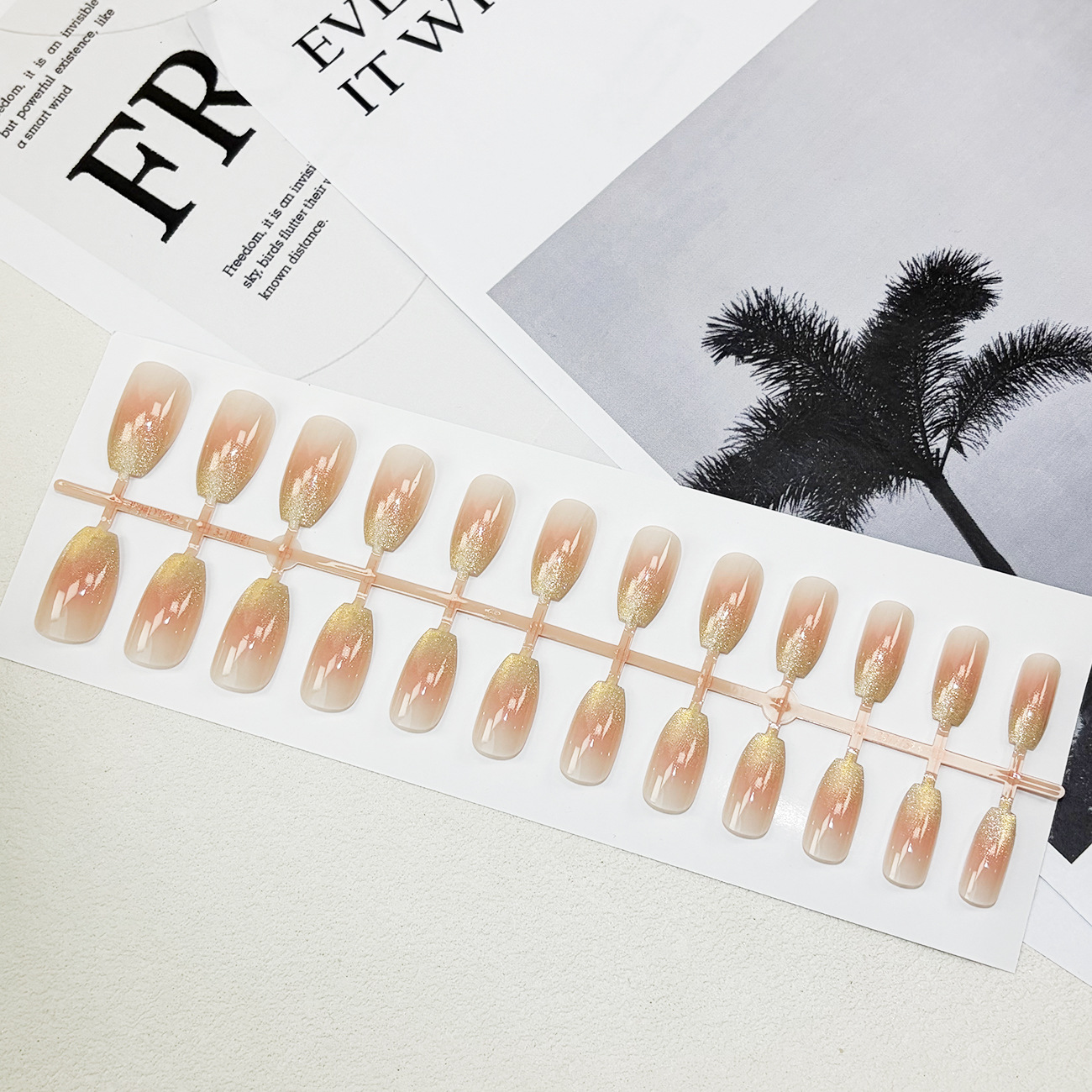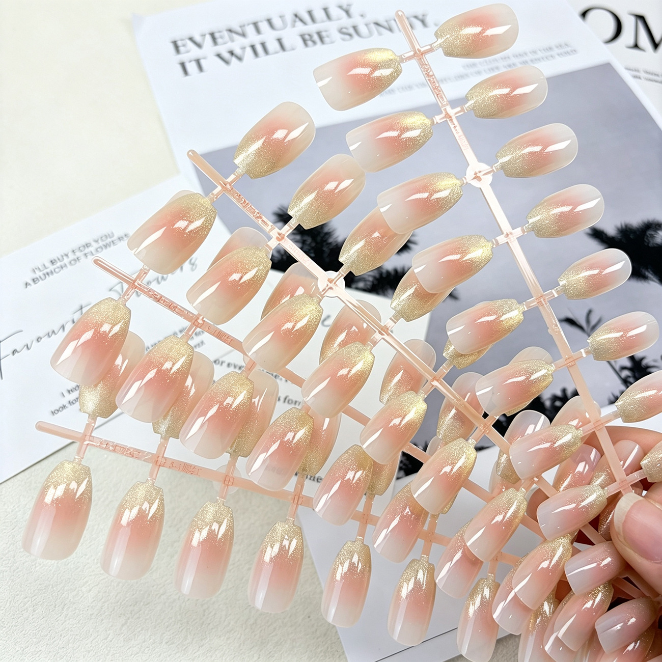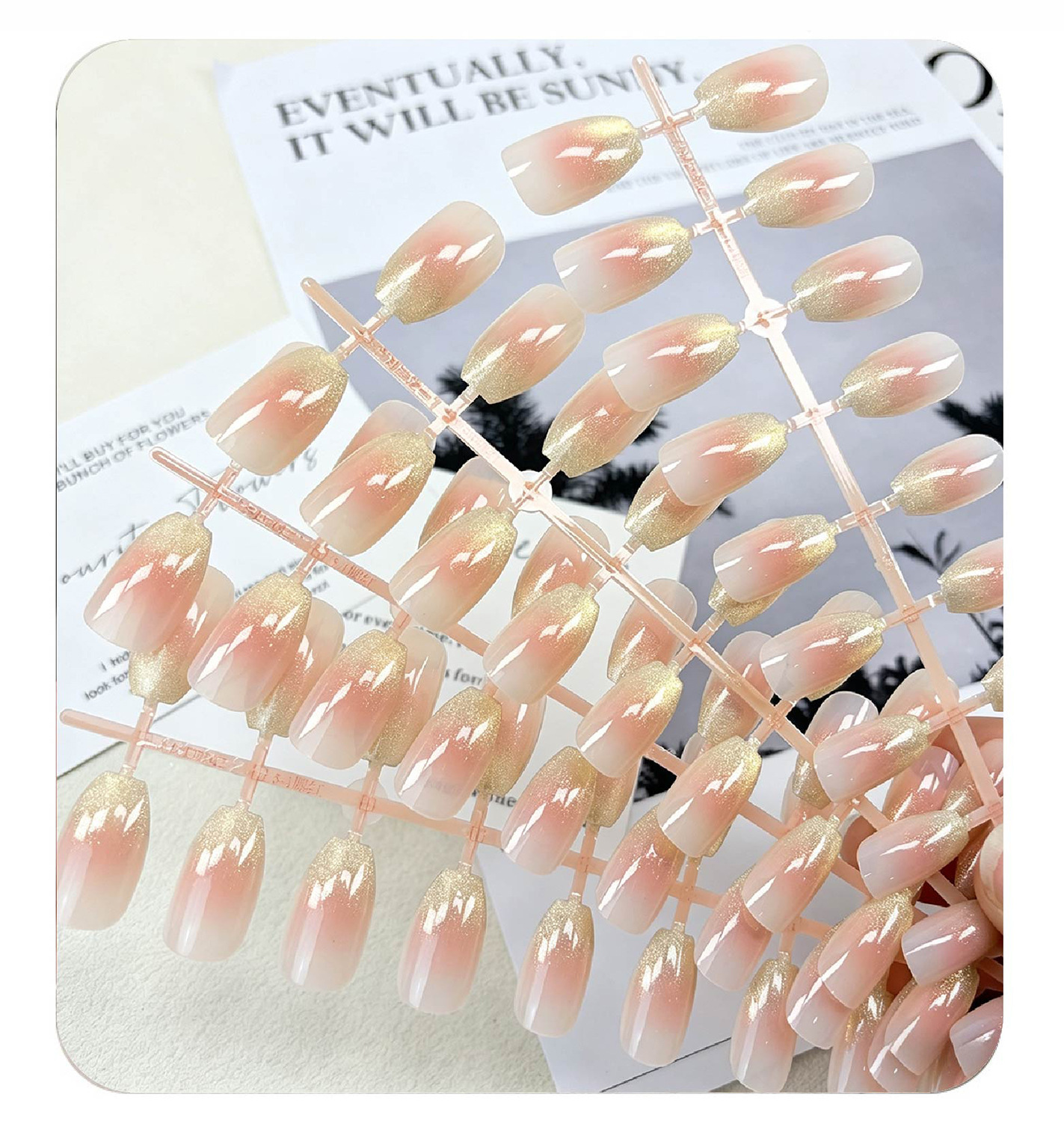 pink gold gradient nail