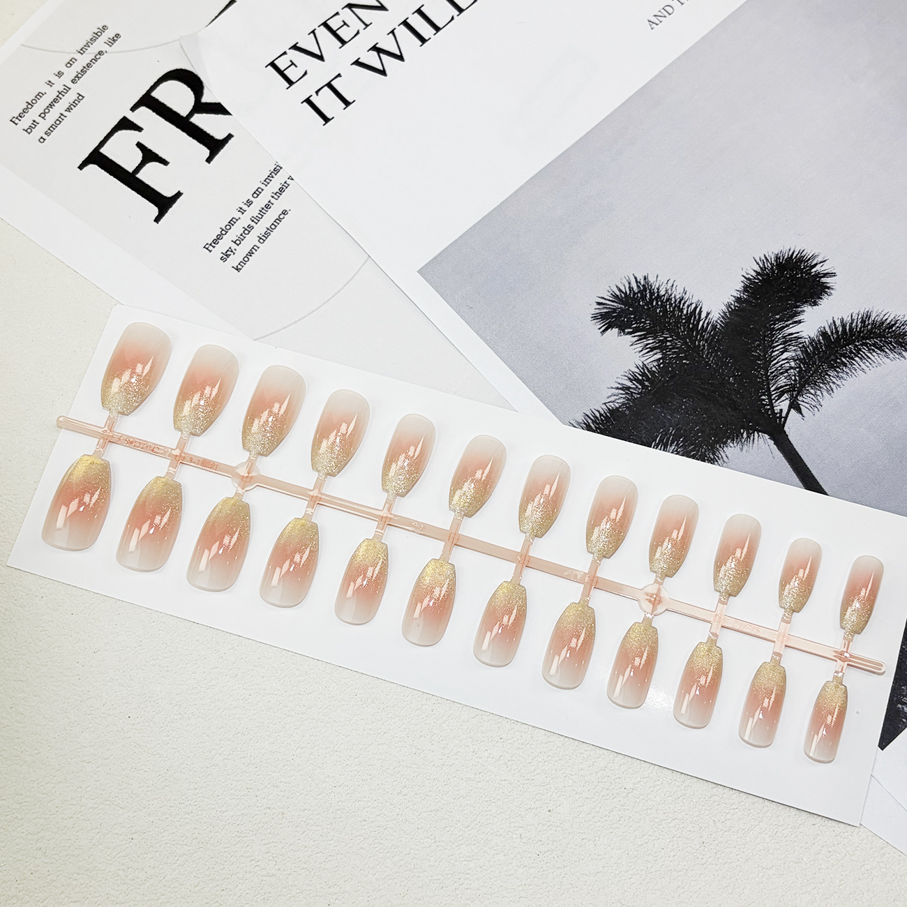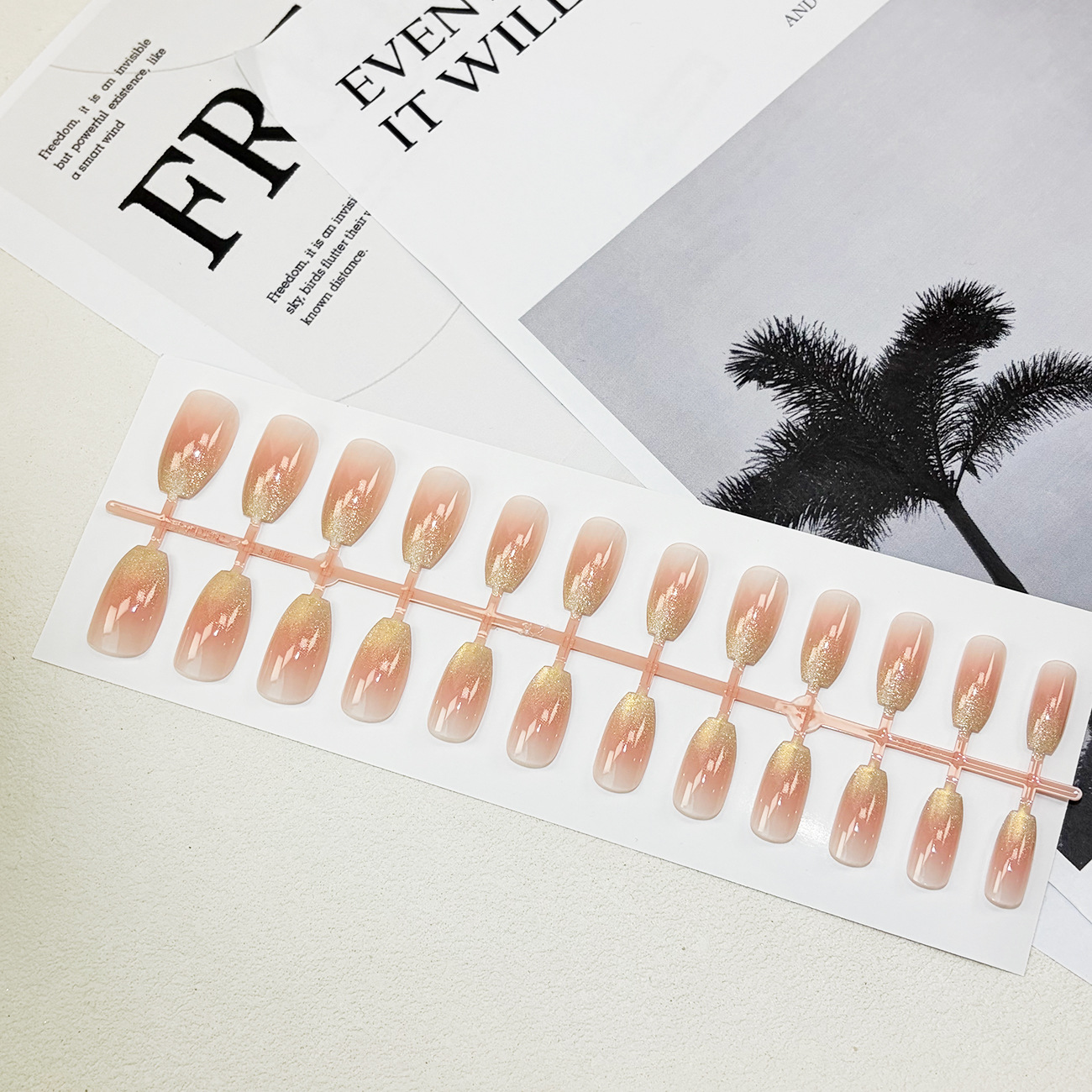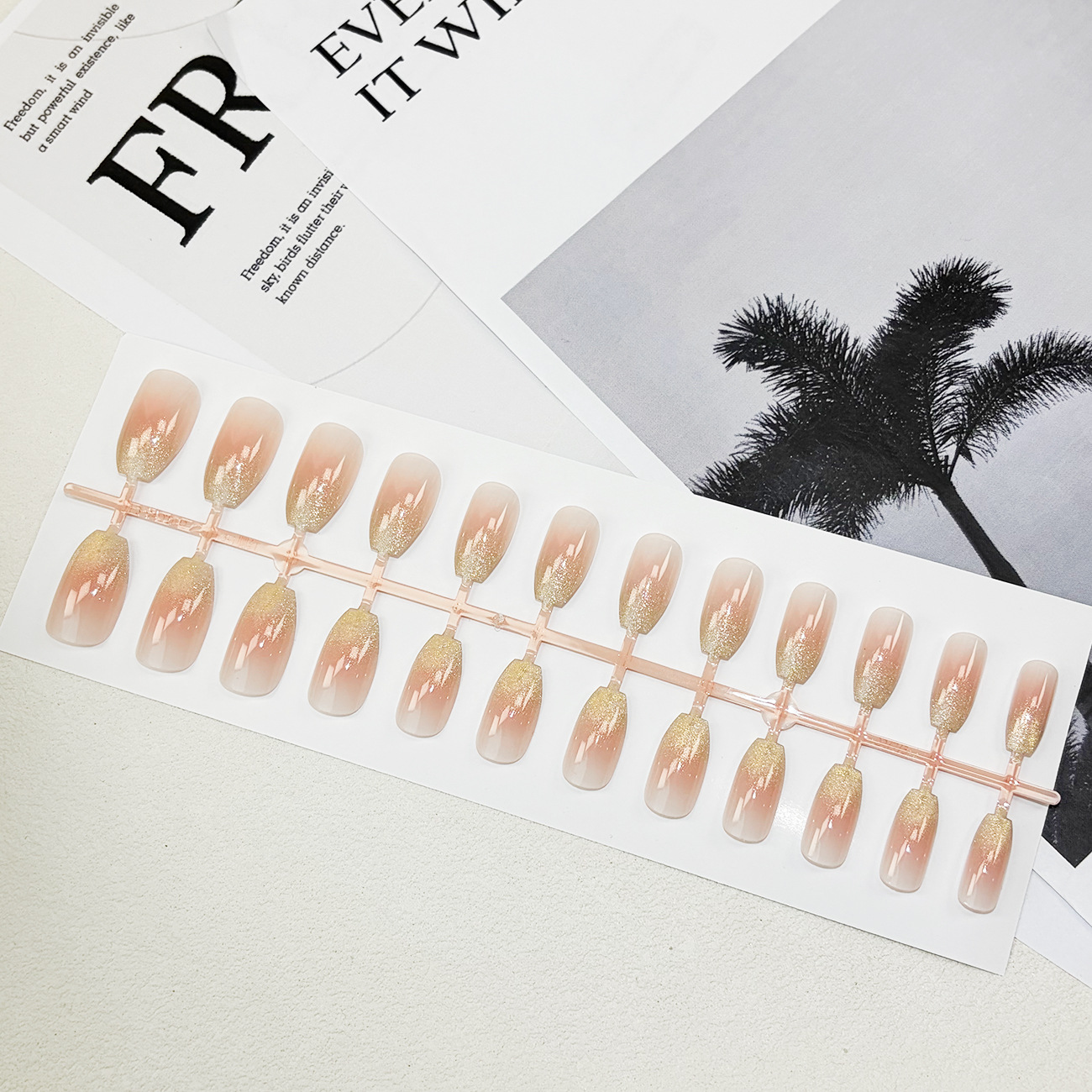 pink gold gradient nail