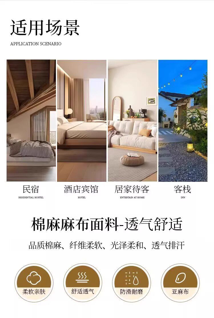 [9mm non-slip] gray cotton and linen diamond bottom
