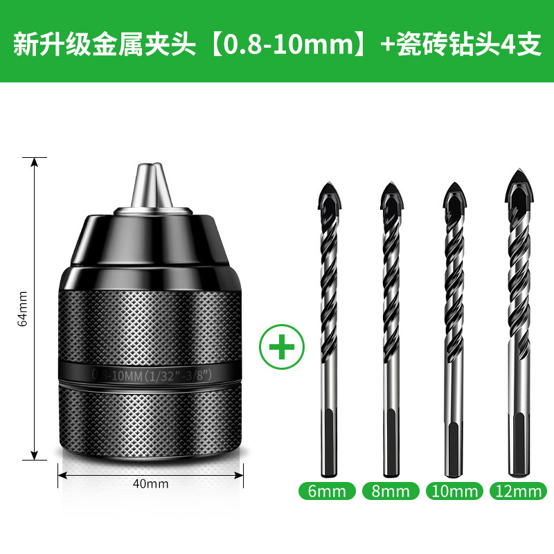 全金属夹头【0.8-10】+瓷砖钻头4支