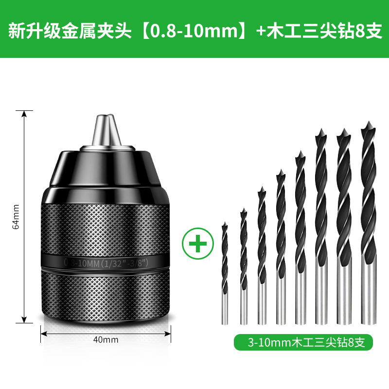 全金属夹头【0.8-10】+木工三尖钻8支
