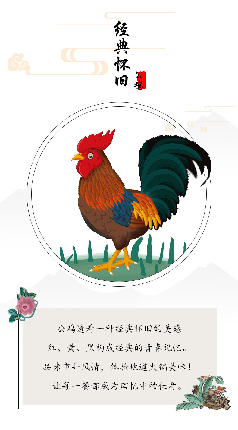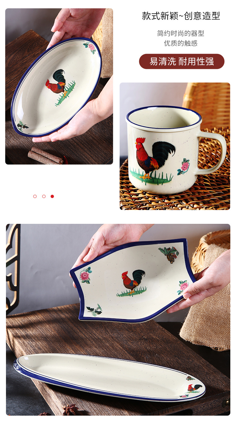 cock, rustic style [medium rectangular plate]