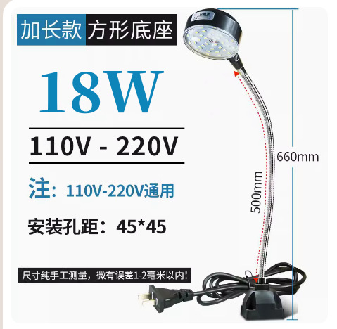 18W【螺丝方座】220V杆500长