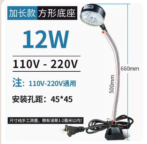 12W【螺丝方座】220V杆500长