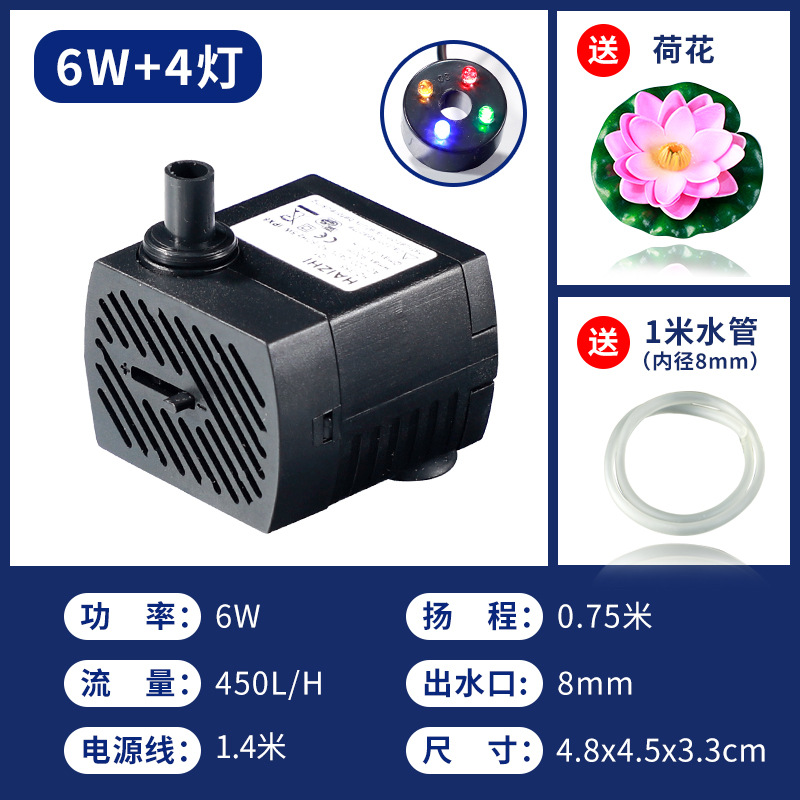 6W带灯静音节能水泵(送1米水管+荷花)