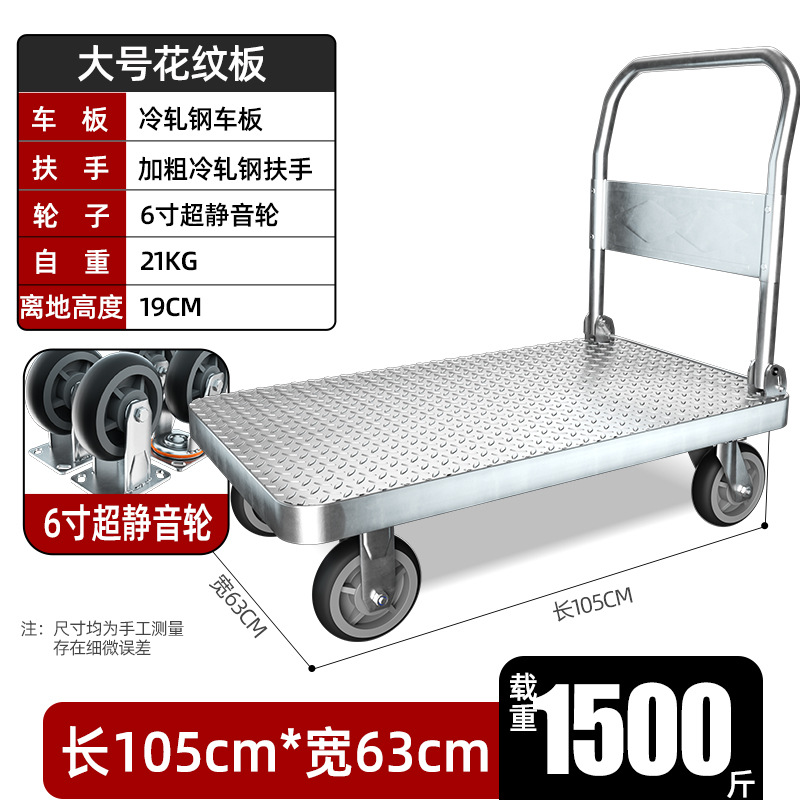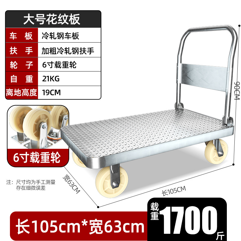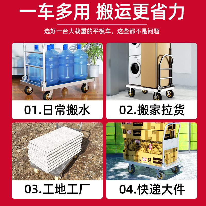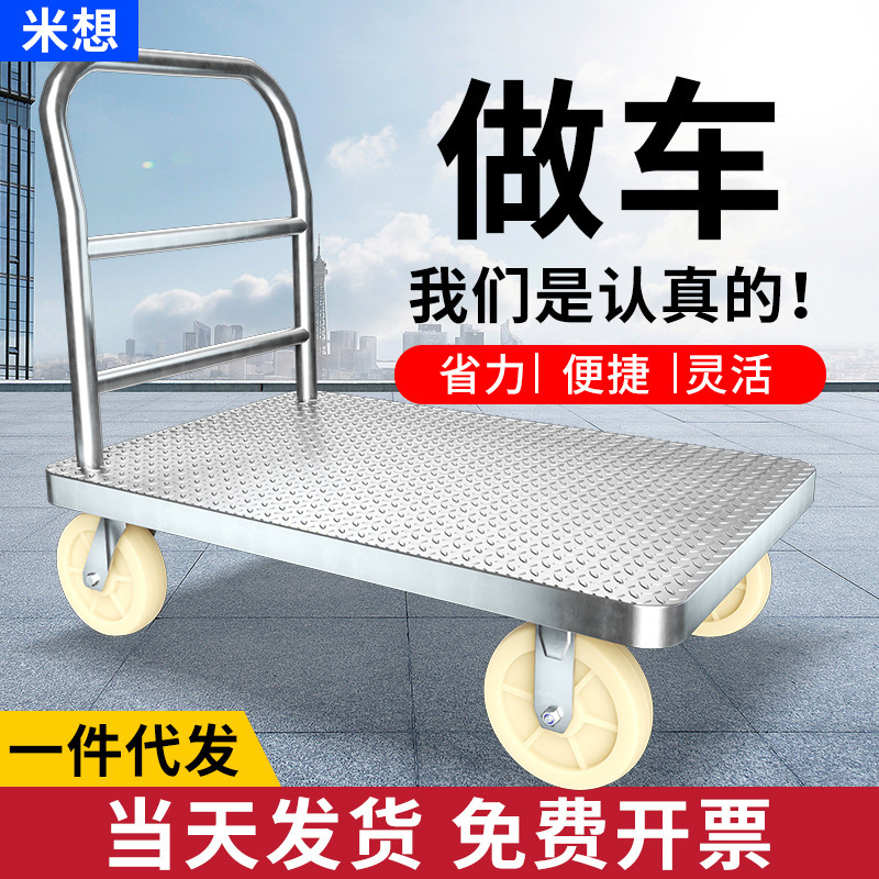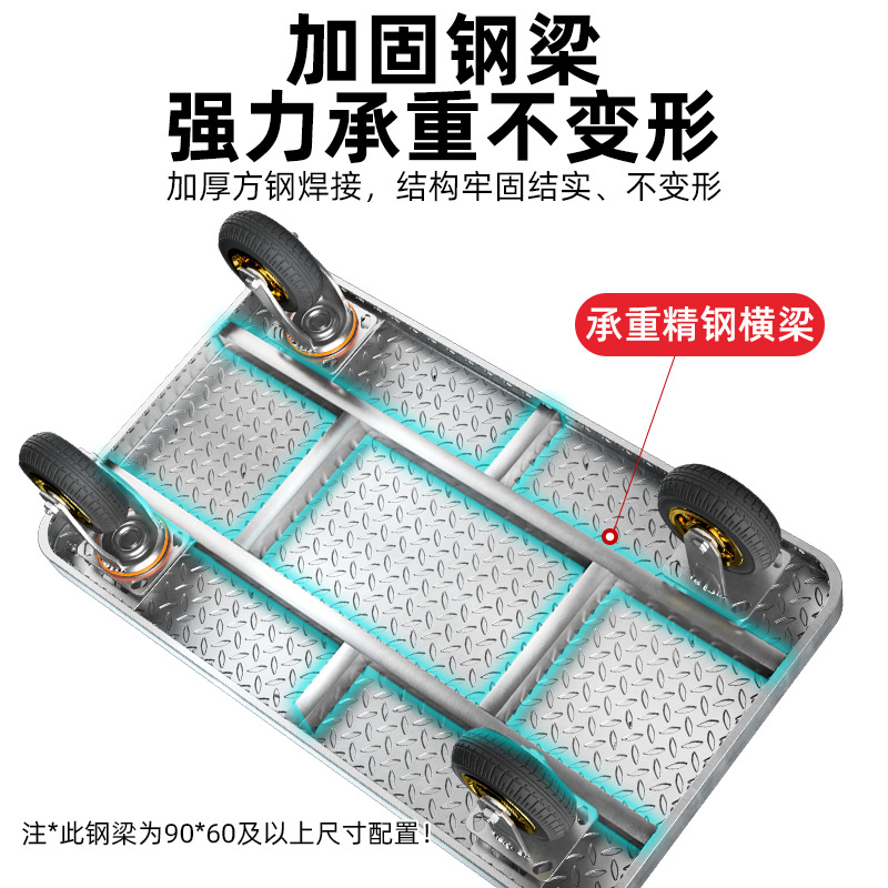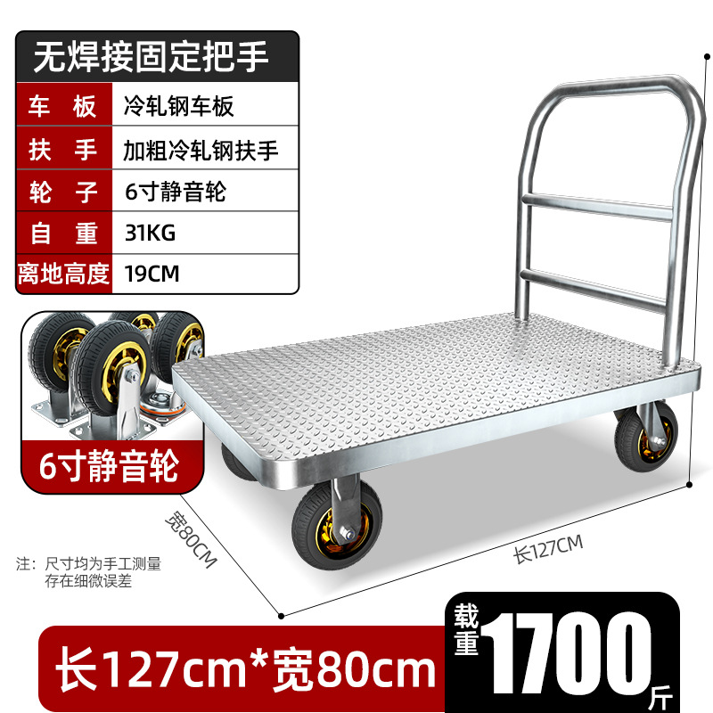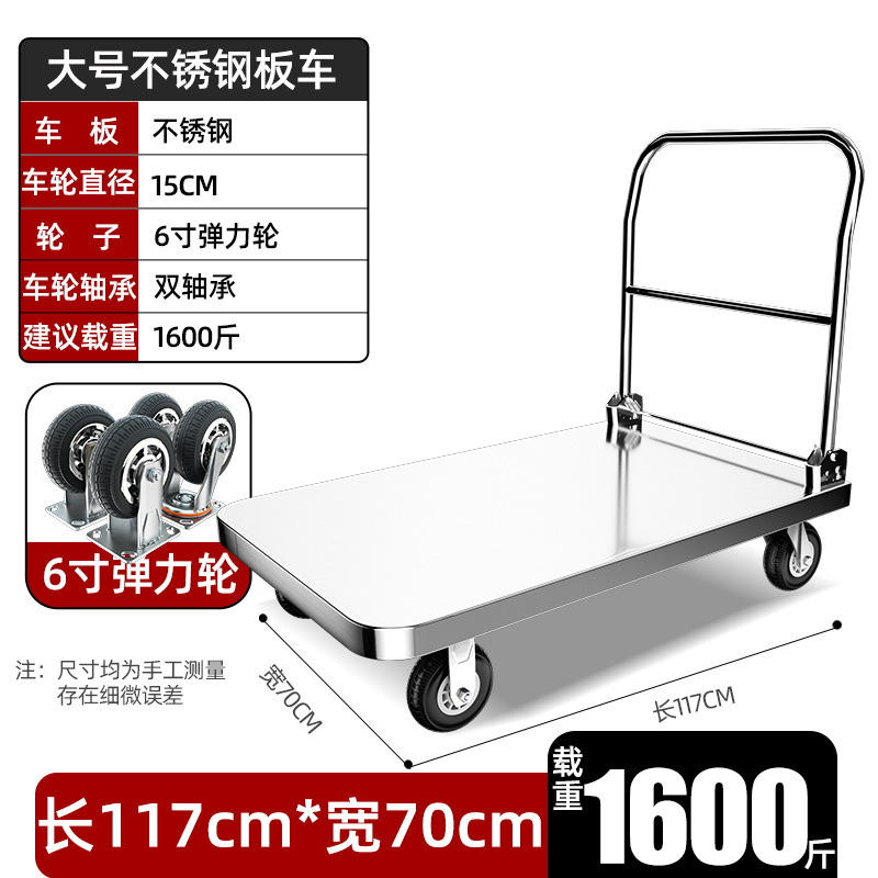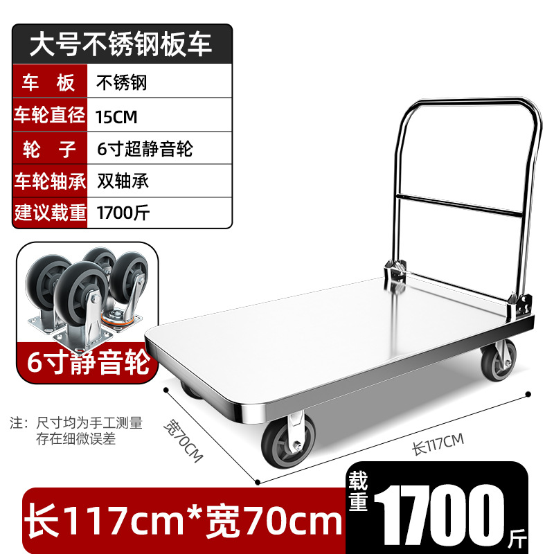【不锈钢】特大号板车配6寸静音轮