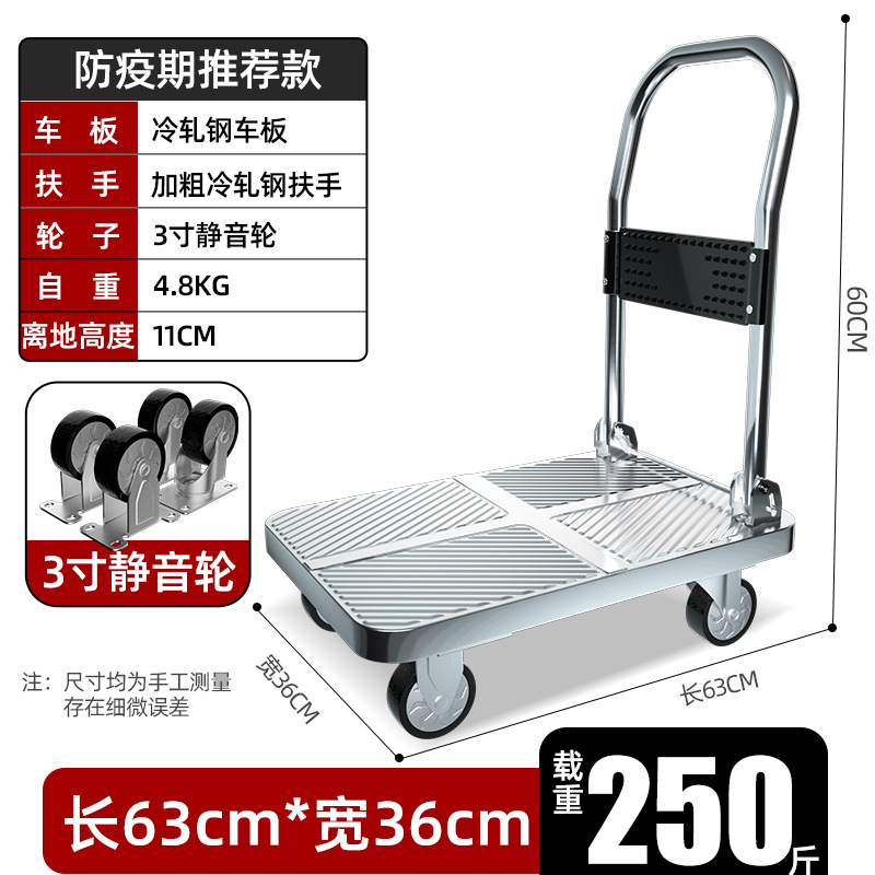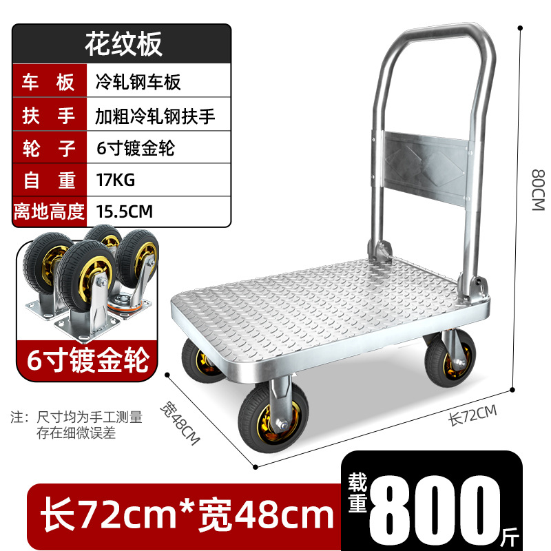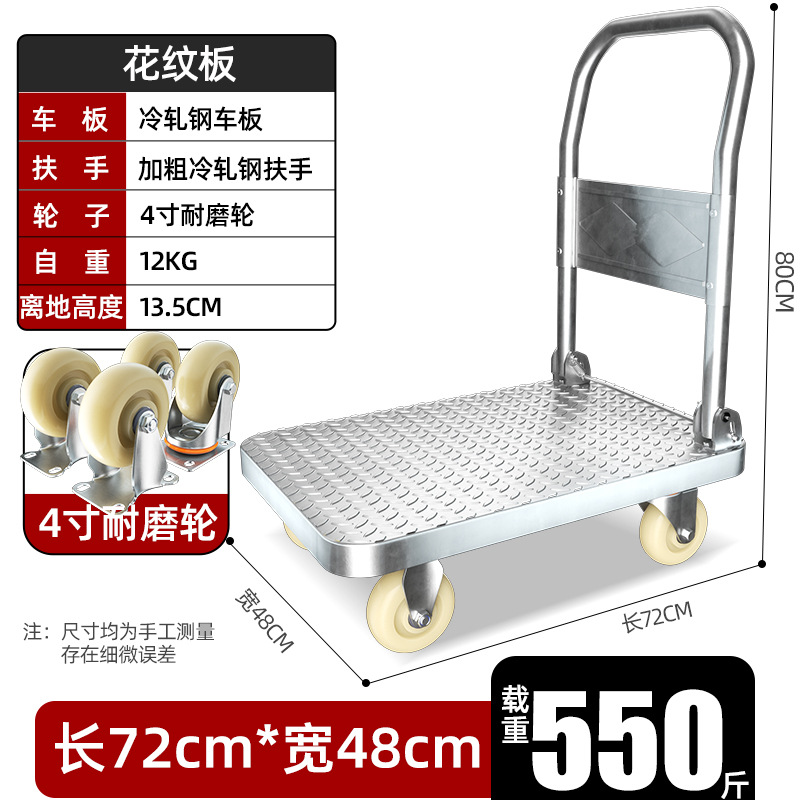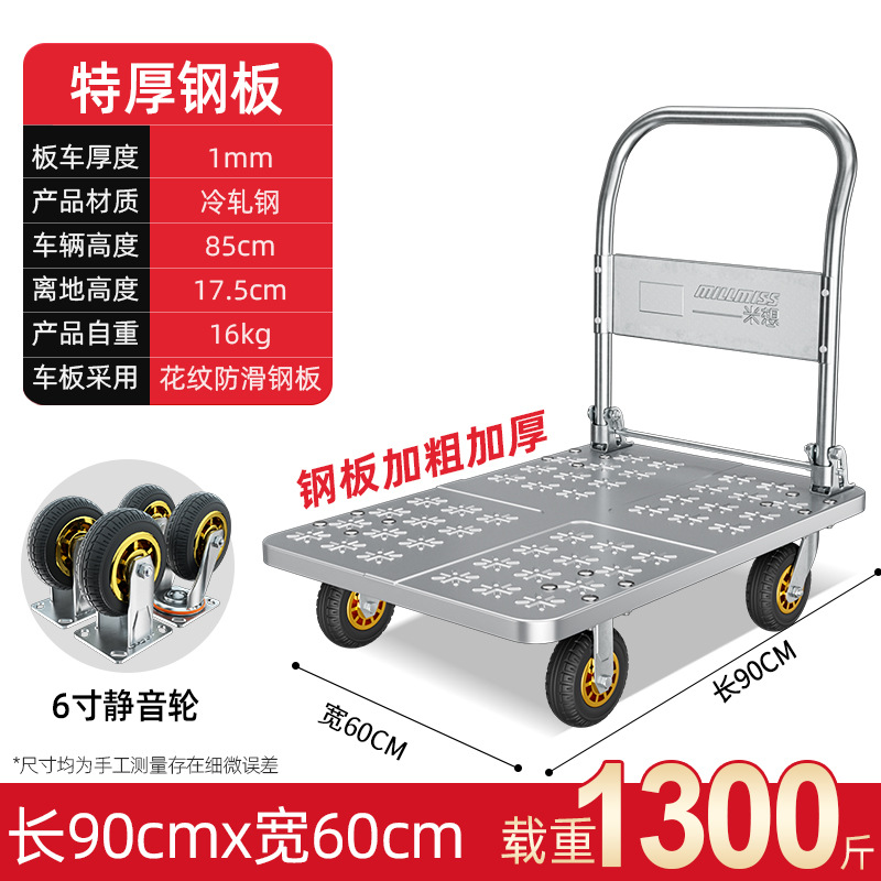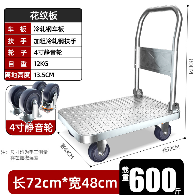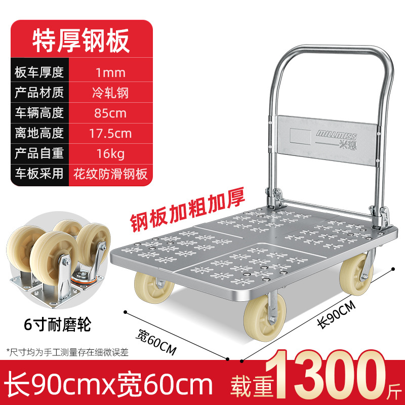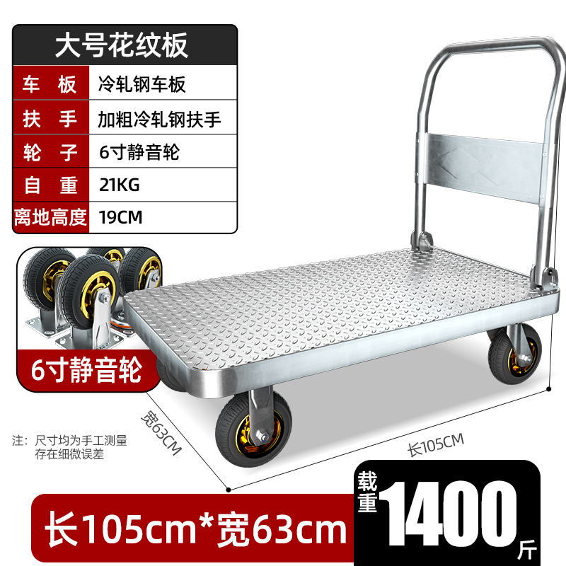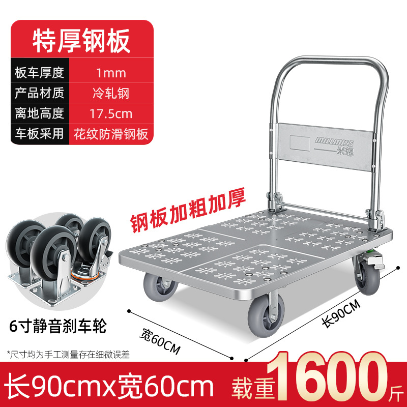 【不锈钢】特大号板车配6寸静音轮
