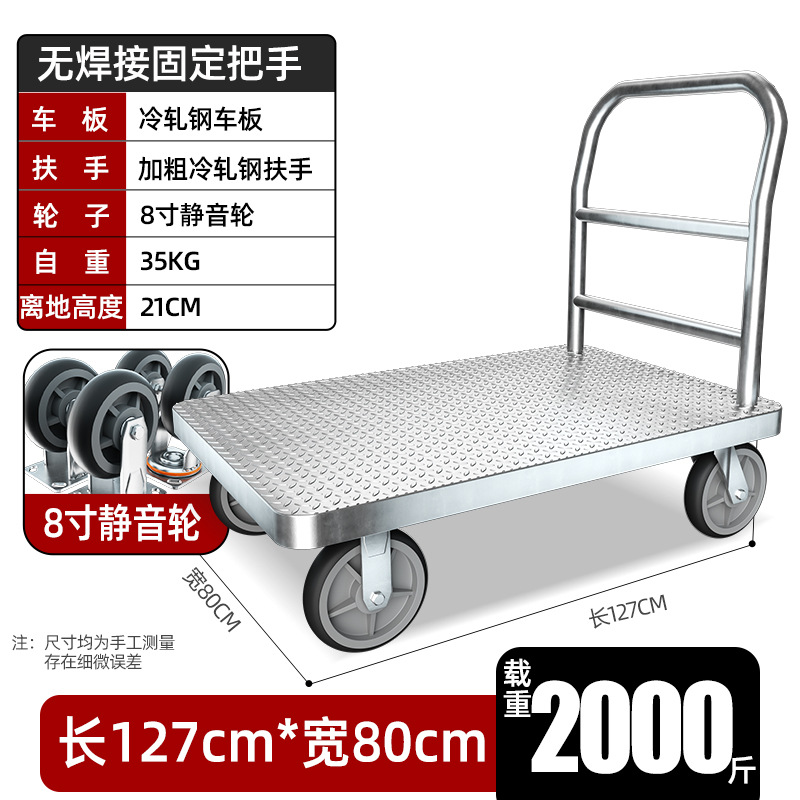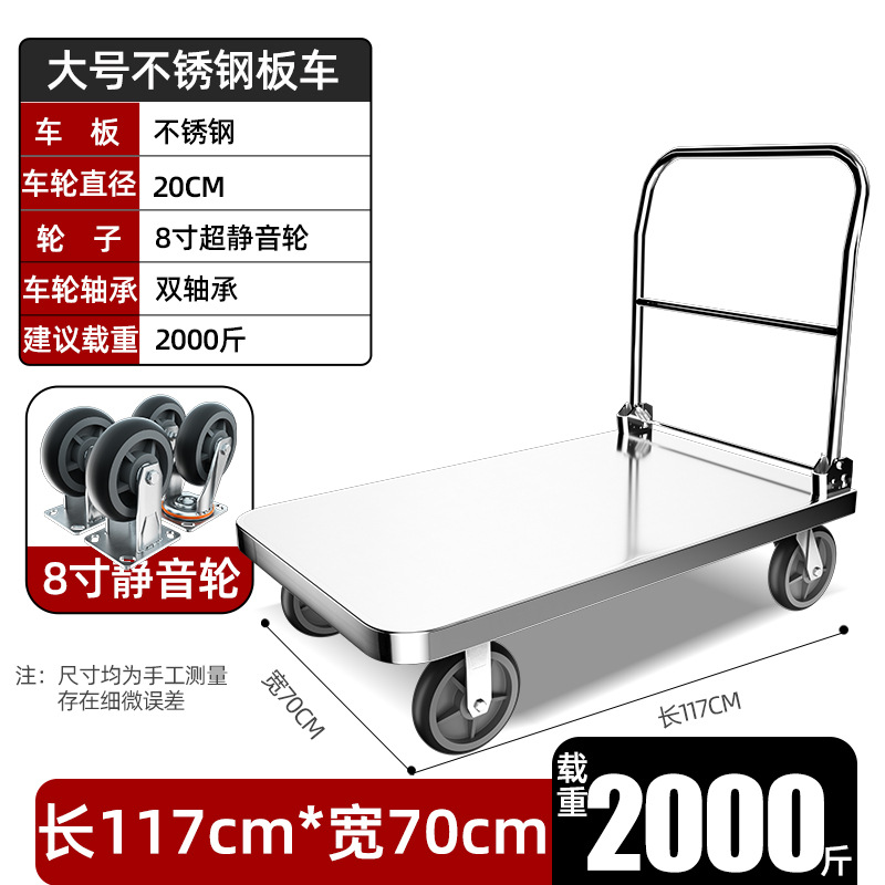 【不锈钢】特大号板车配8寸静音轮