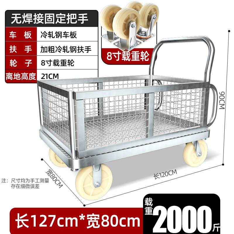 【带围栏】特大号钢板车配8寸耐磨轮