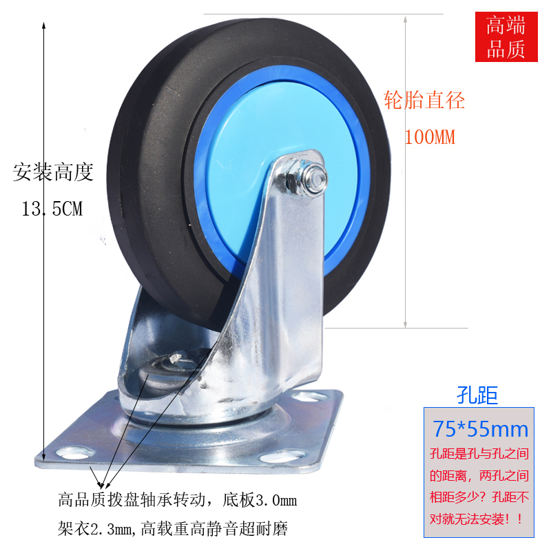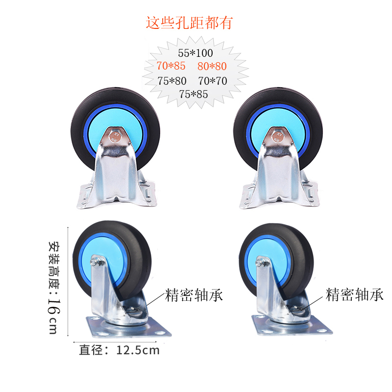 5寸超静音塑料蓝4只/2定2转