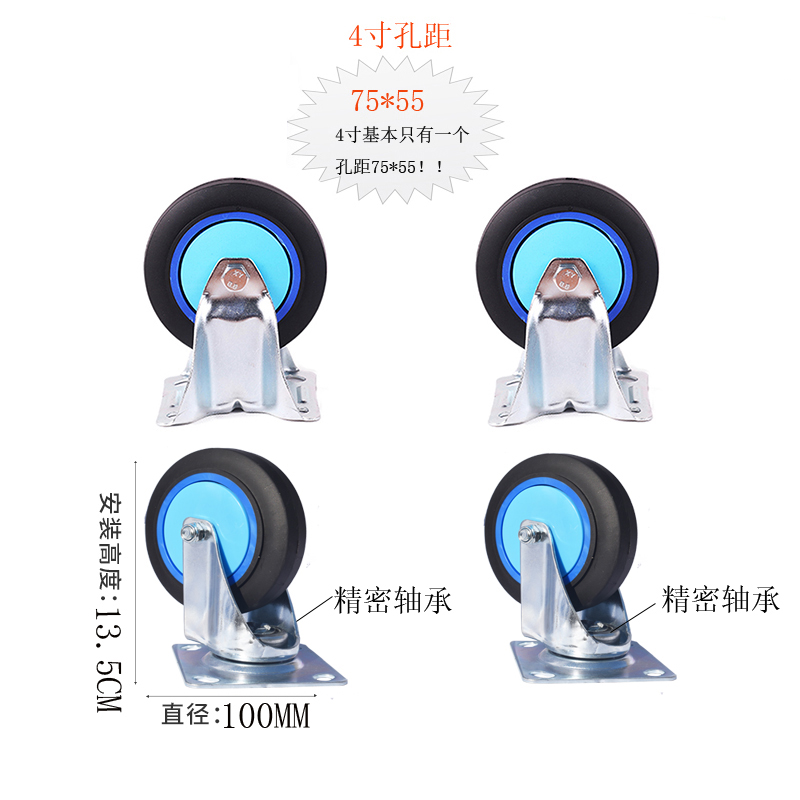 4寸轴承超静音铁架4只/2定2转