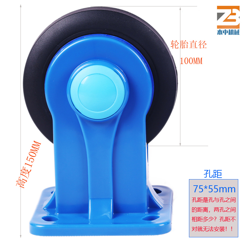 5寸超静音塑料蓝定向轮子