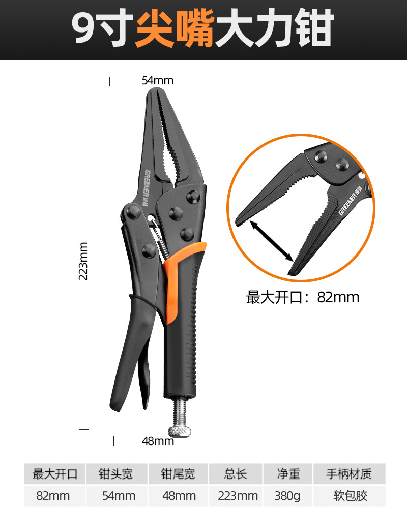 【升级黑鳄款】9寸尖嘴大力钳