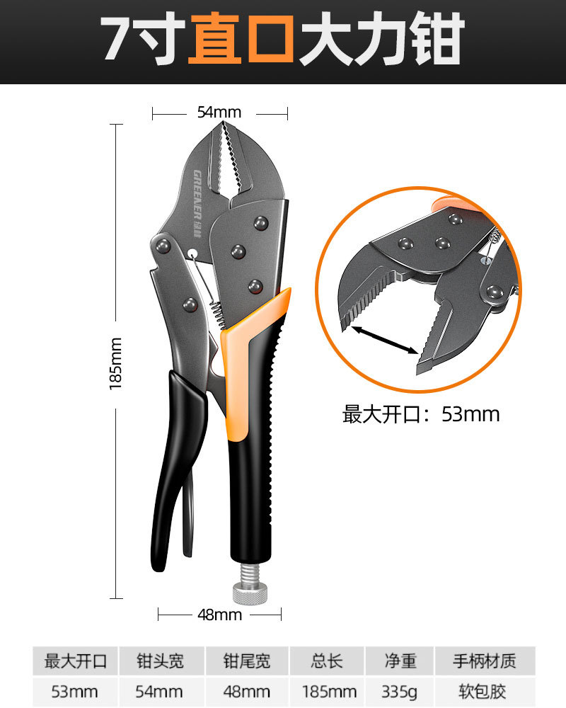 【升级黑鳄款】7寸直口大力钳