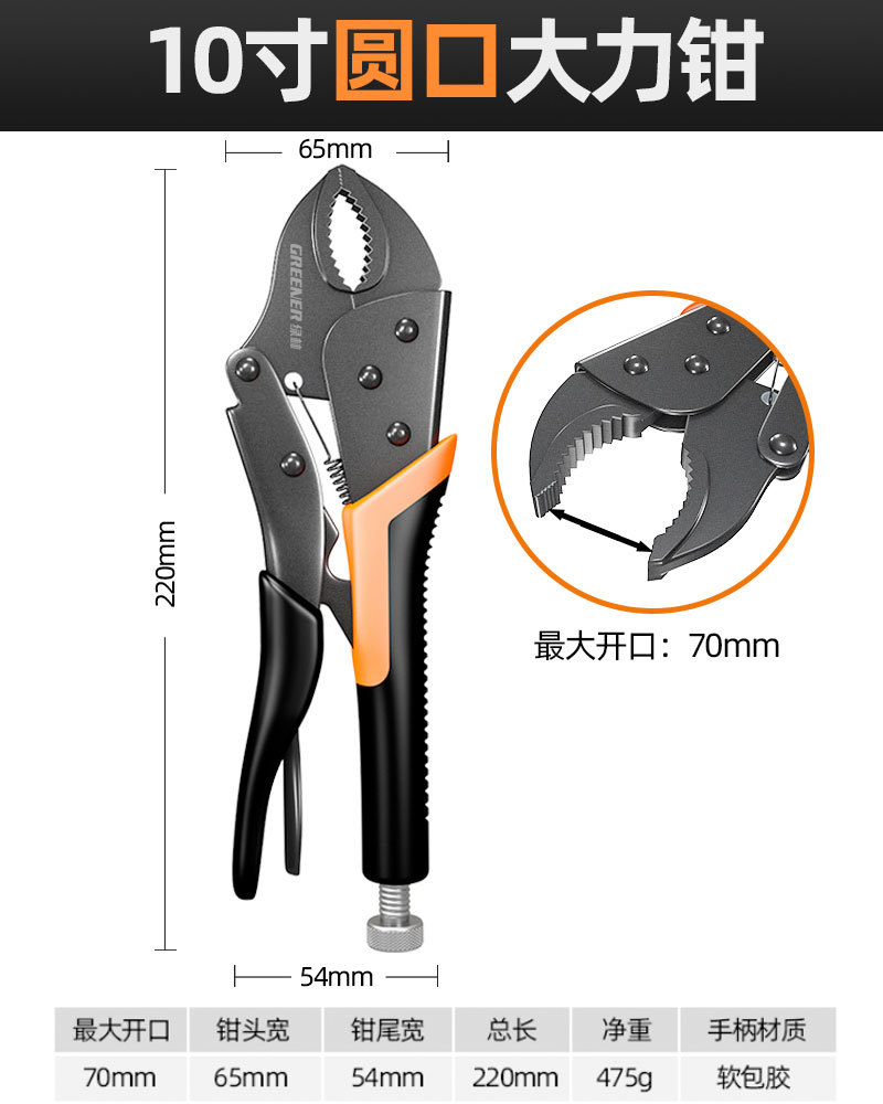 【升级黑鳄款】10寸圆口大力钳