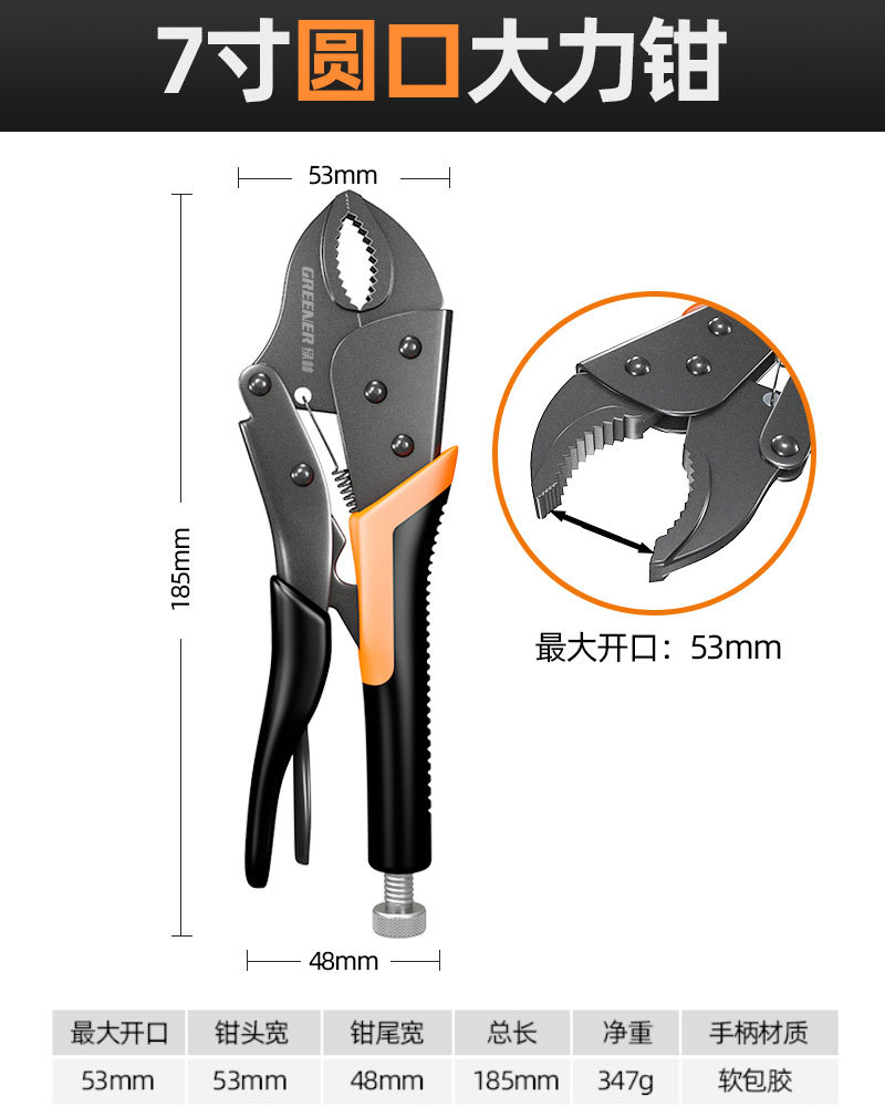 【升级黑鳄款】7寸圆口大力钳