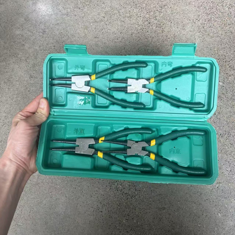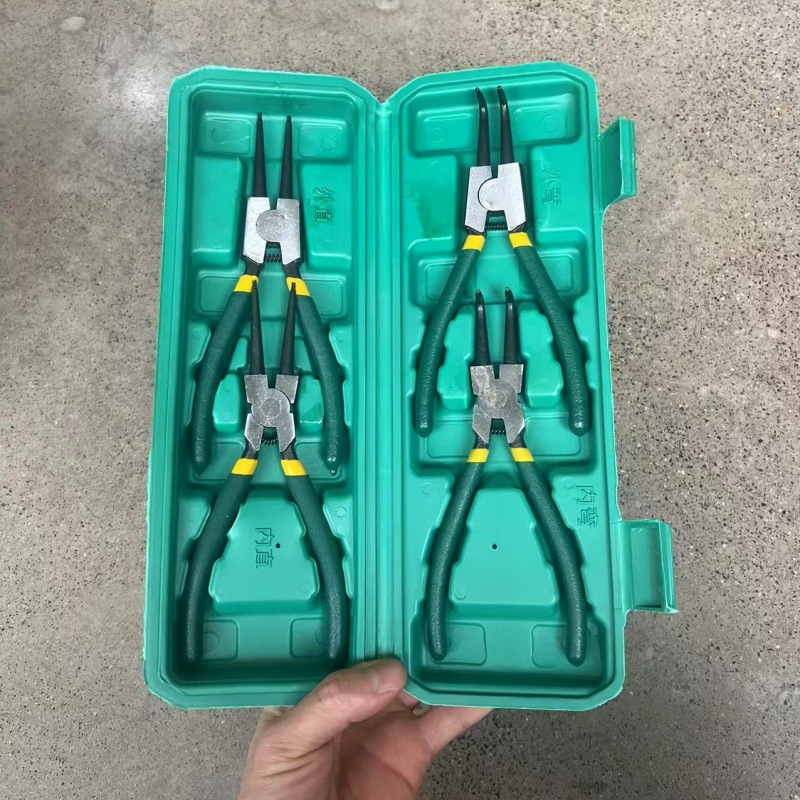 7寸 4PC黄绿柄卡簧钳(塑盒装)