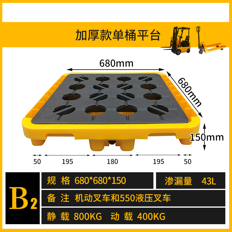 B2单桶托盘特厚款680*680*150 可550宽手动叉车