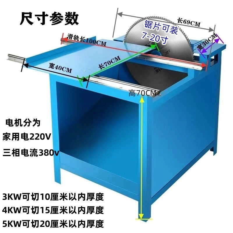 全铜电机推台款3KW220V【不带锯片】 适配7寸-20寸锯片
