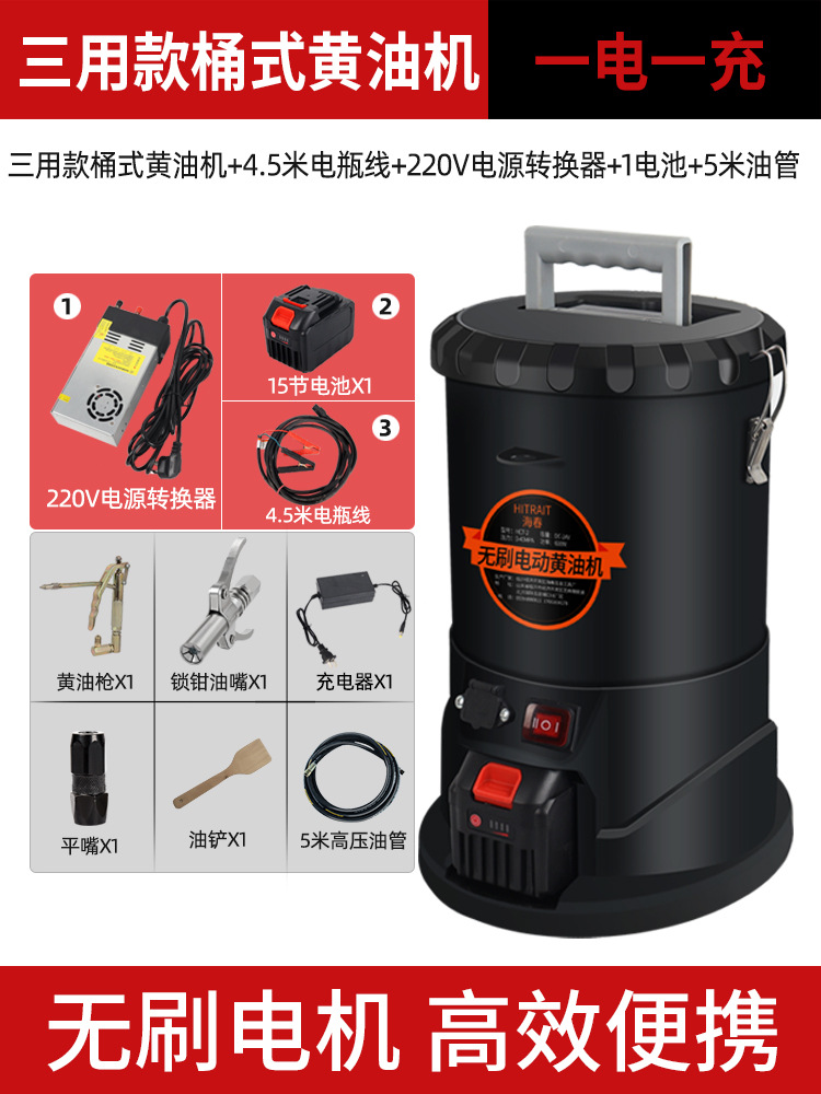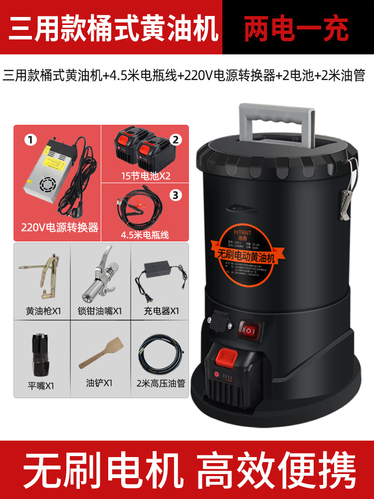 三用锂电黄油机桶式+5米高压管+4.5米电瓶线+220v电源转换器+2电池+1充