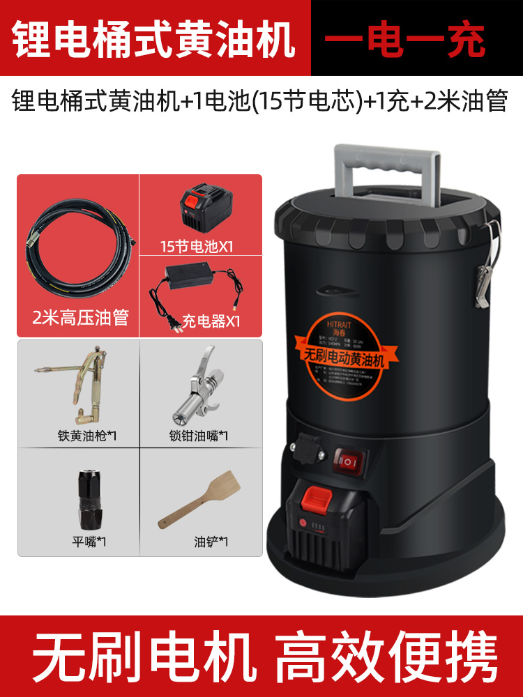 两用锂电黄油机桶式+5米高压管+4.5米电瓶线+1电池(15节电芯)+1充